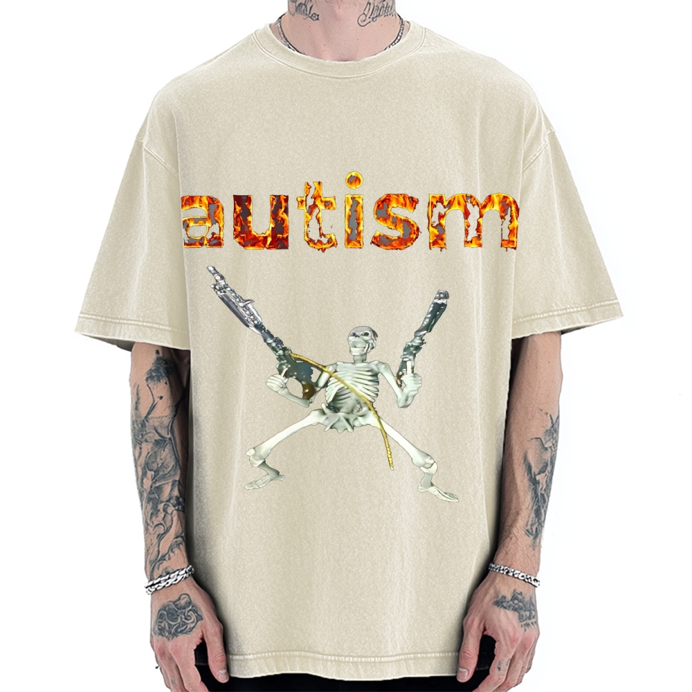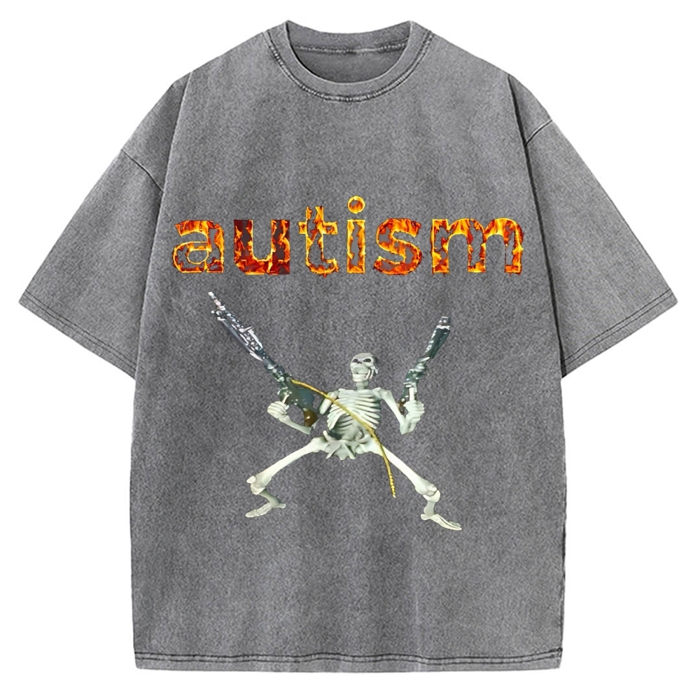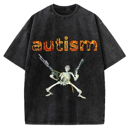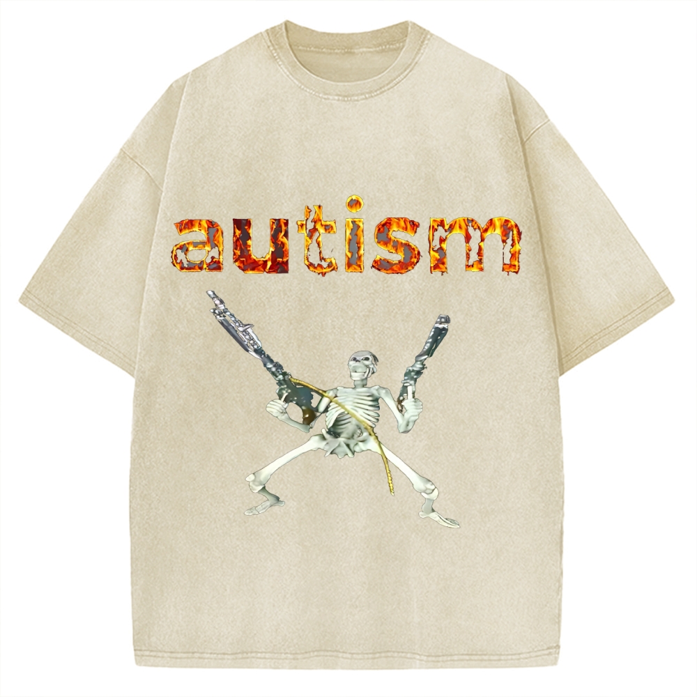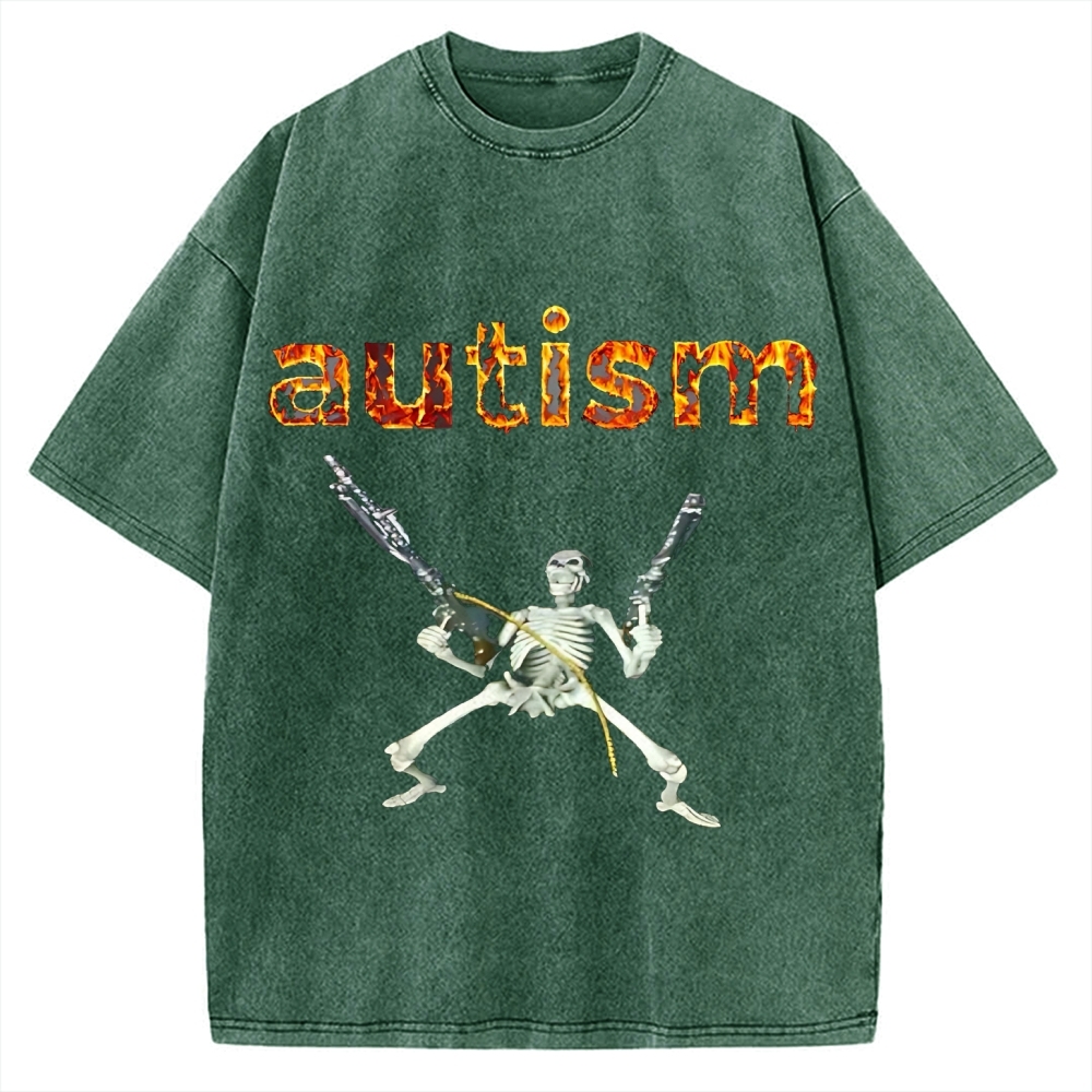Excited Skeleton With Guns Vintage Washed T-shirt