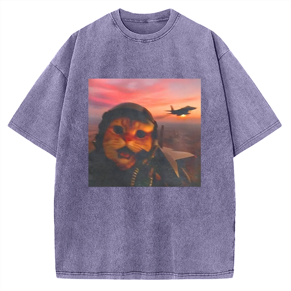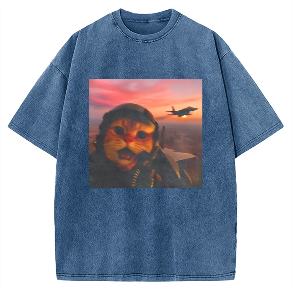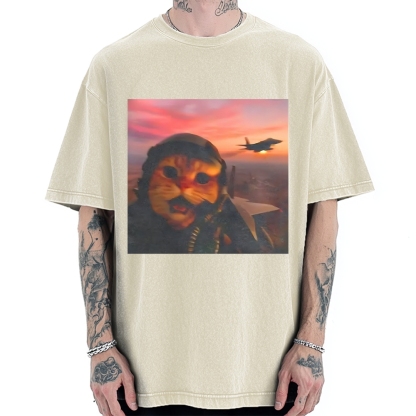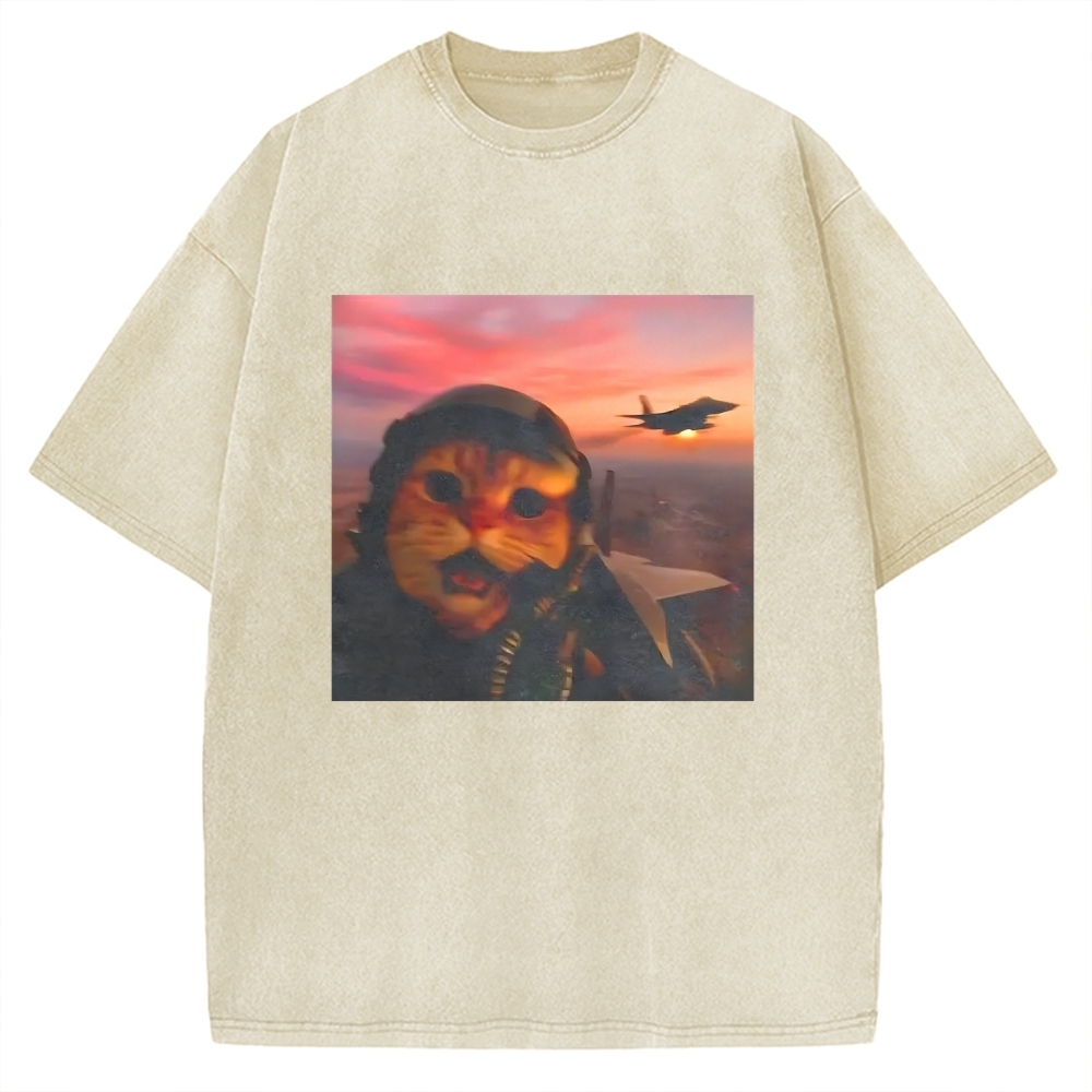Funny Fighter Pilot Cat Vintage Washed T-shirt