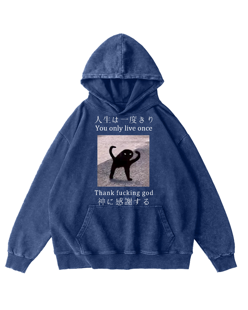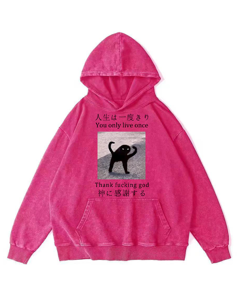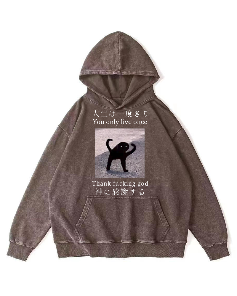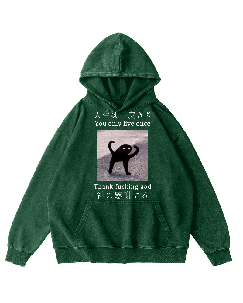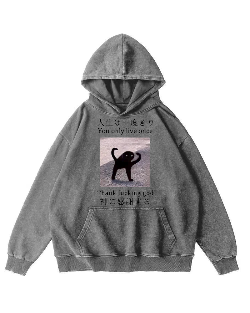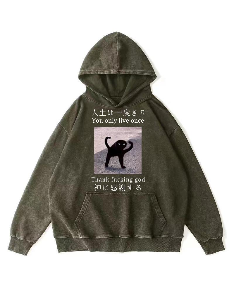 Funny Mysterious Cat Vintage Washed Hoodie