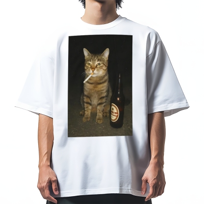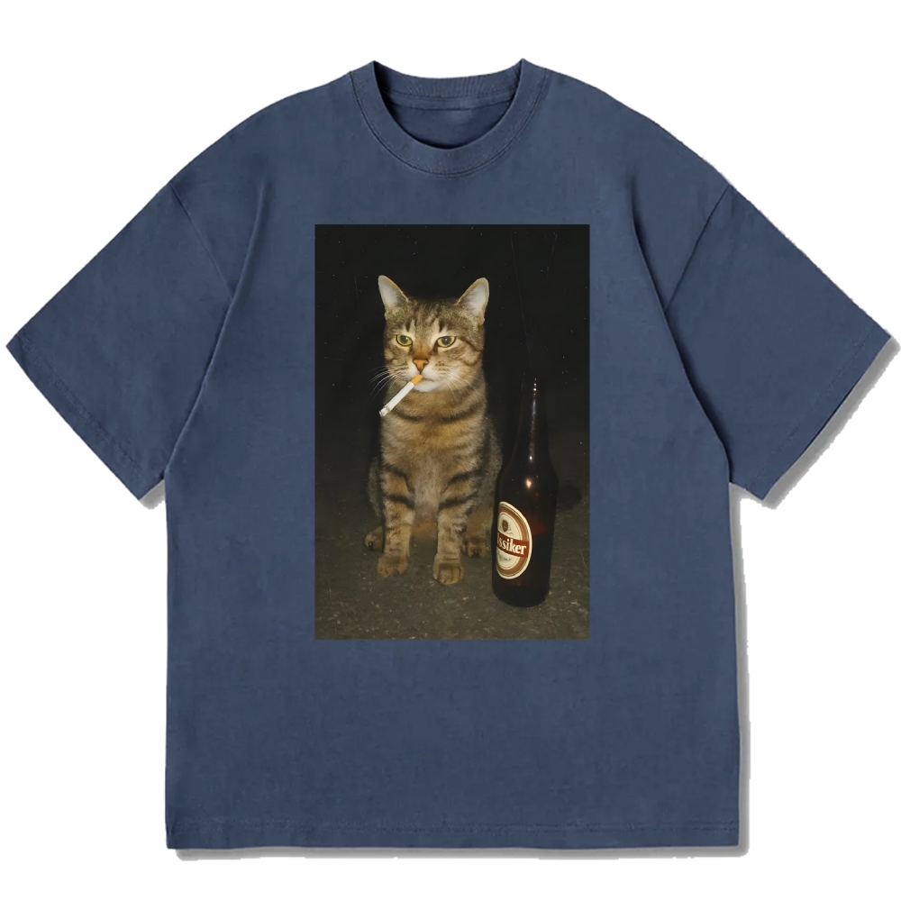 Funny Smoking Cat Cotton casual T-shirt