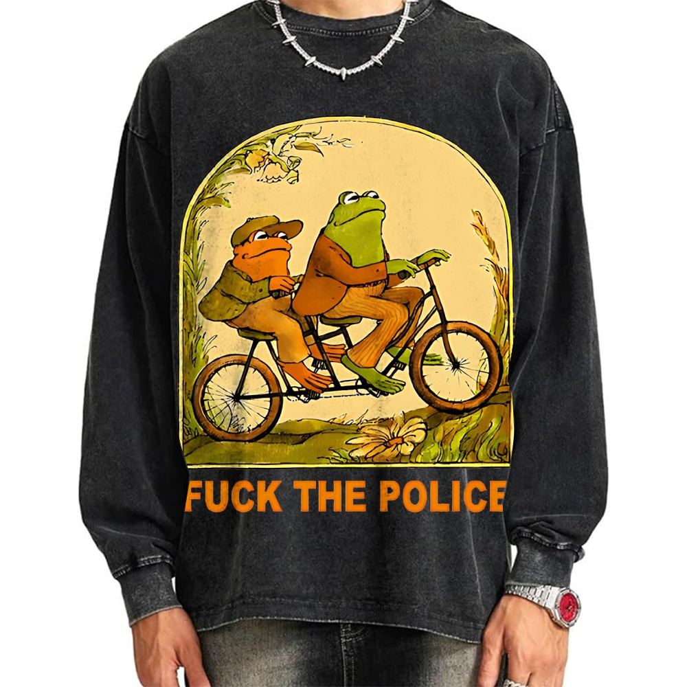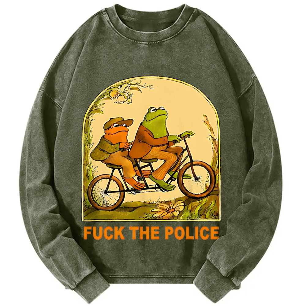 Fxxk The Police Frog Vintage Washed Sweatshirts