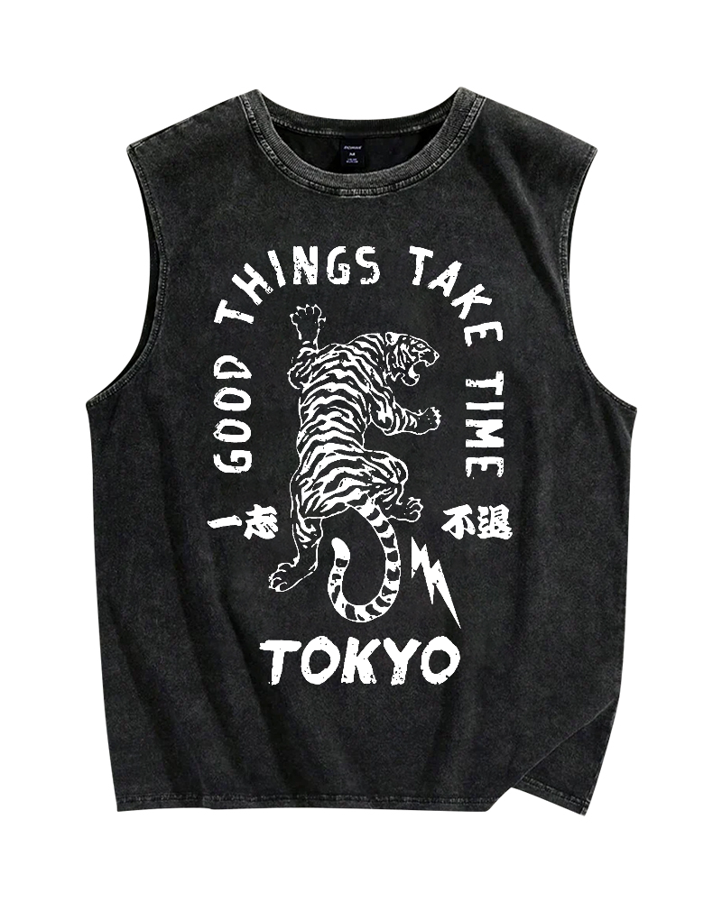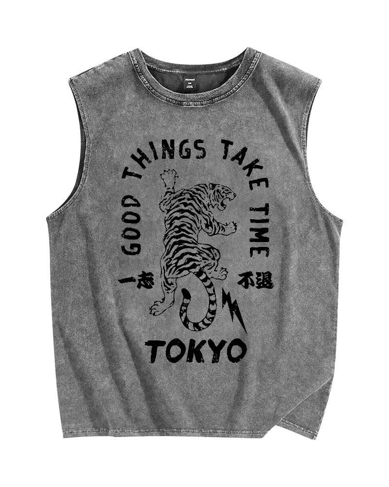 Good Things Take Time Tiger Vintage Distressed Washed Tank Top