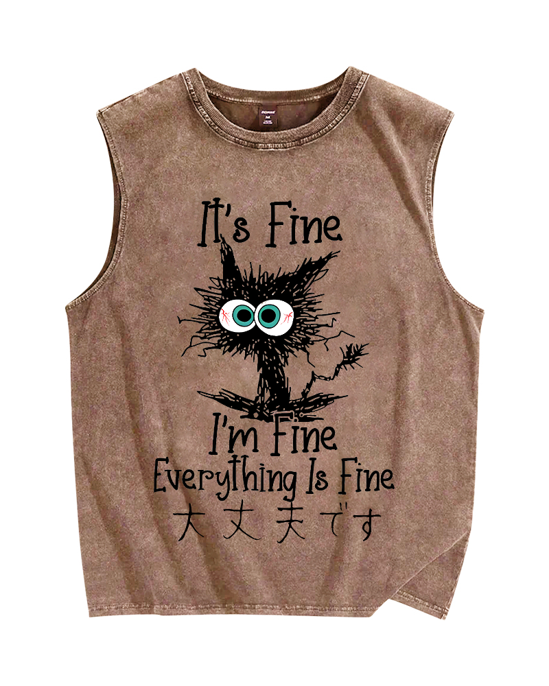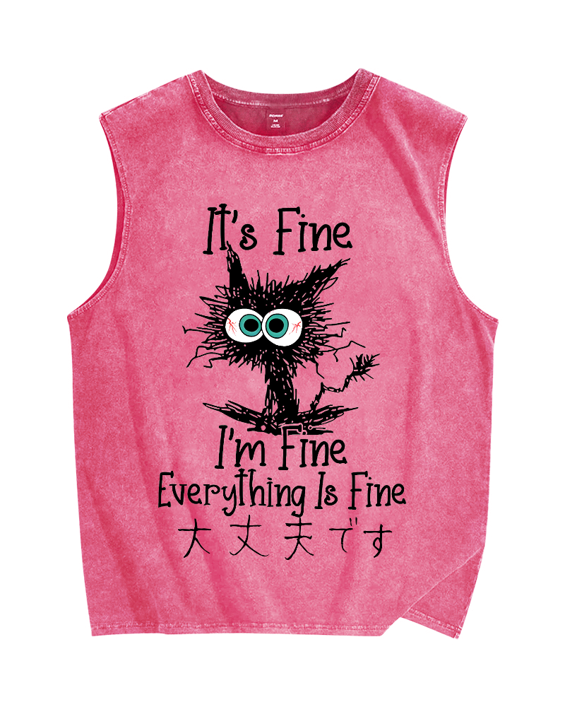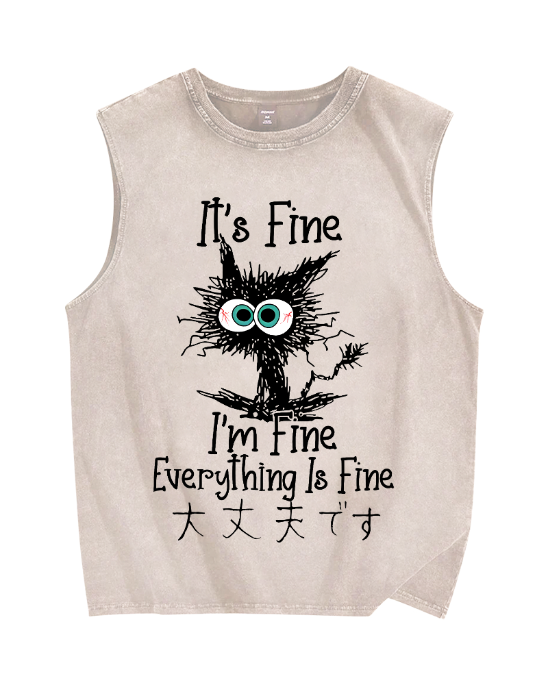 It's Fine Cat Vintage Distressed Washed Tank Top