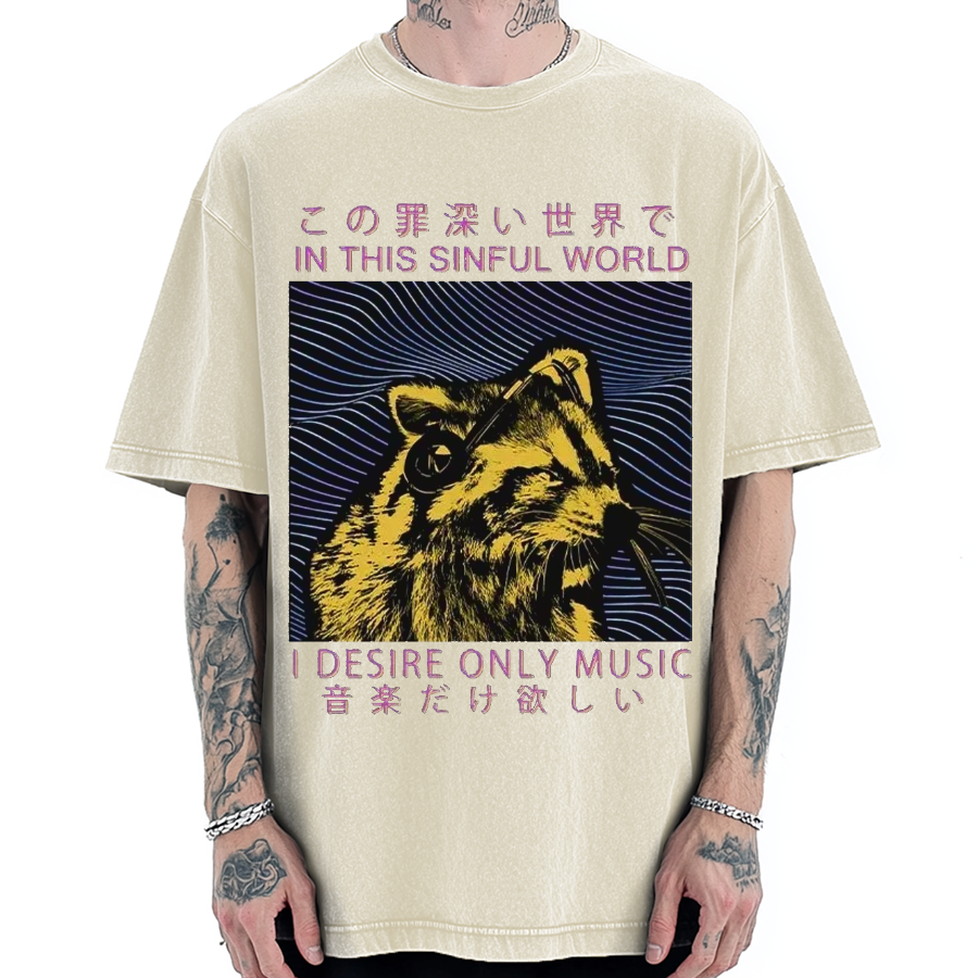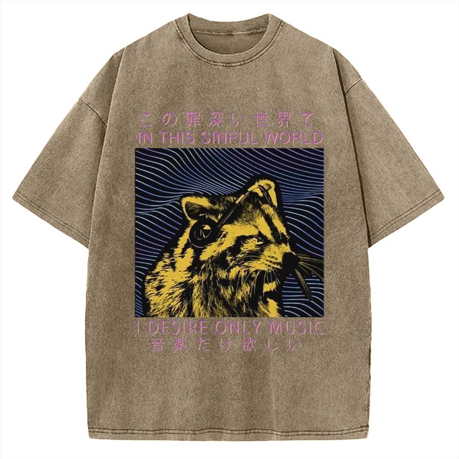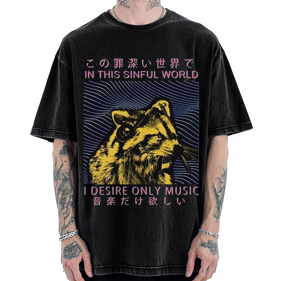 Music Raccoon Vintage Washed T-shirt