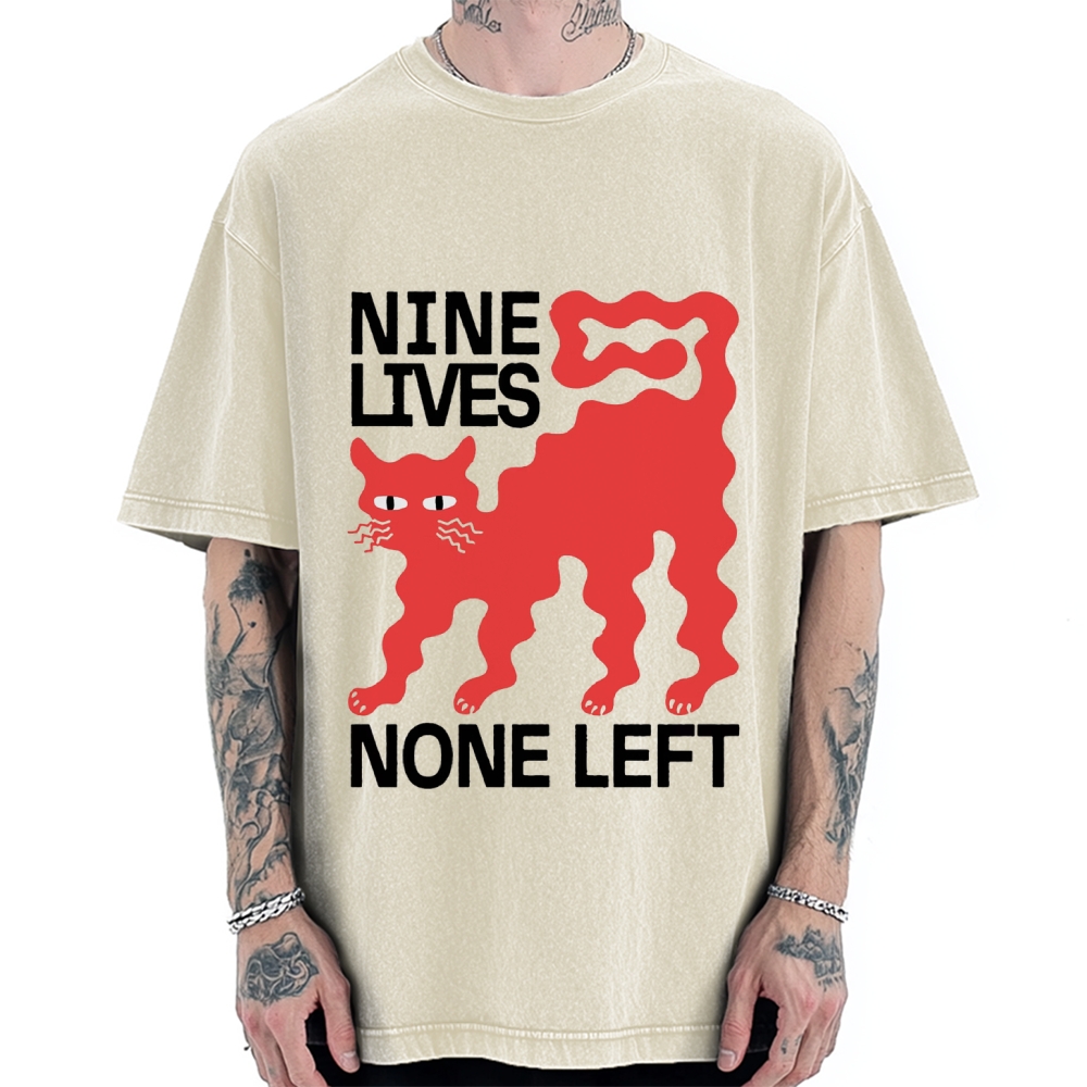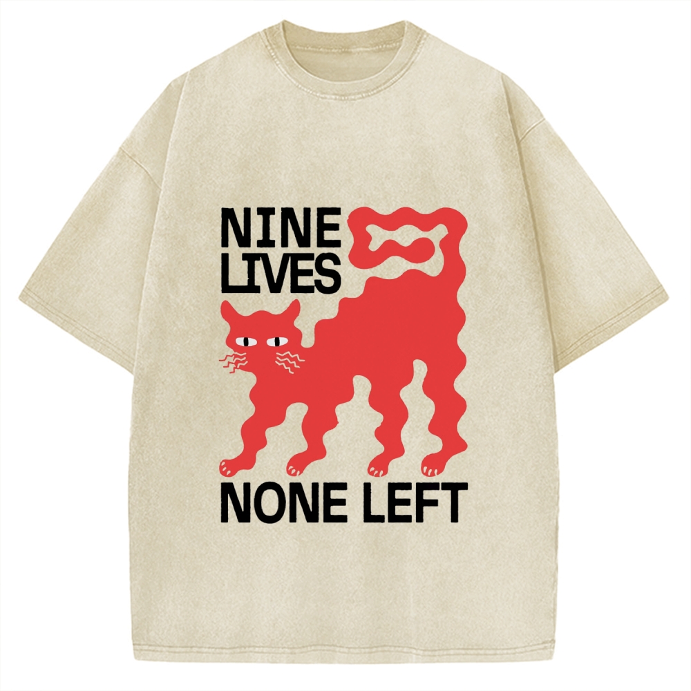 Nine lives None Left Cat Vintage Washed T-shirt