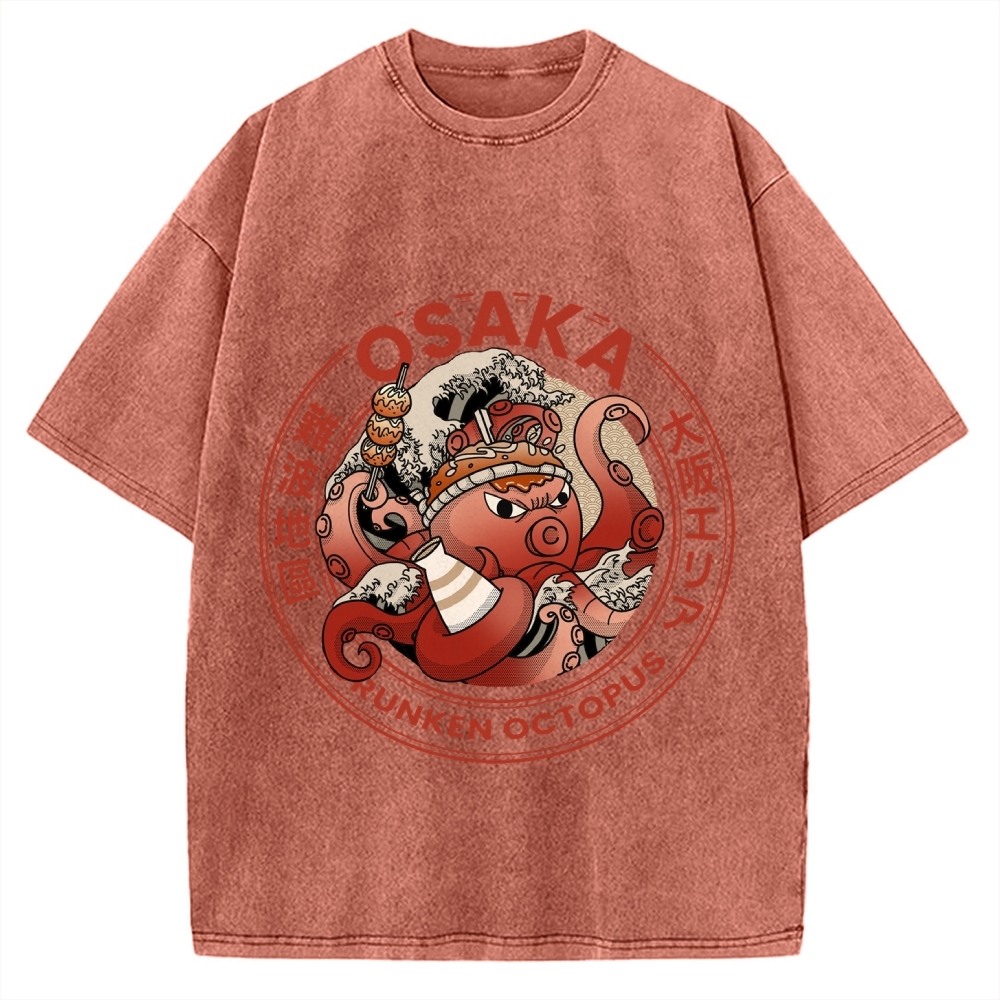 Osaka Dotonbori Drunken Octopus Vintage Washed T-shirt
