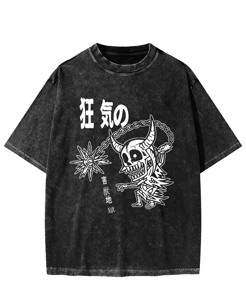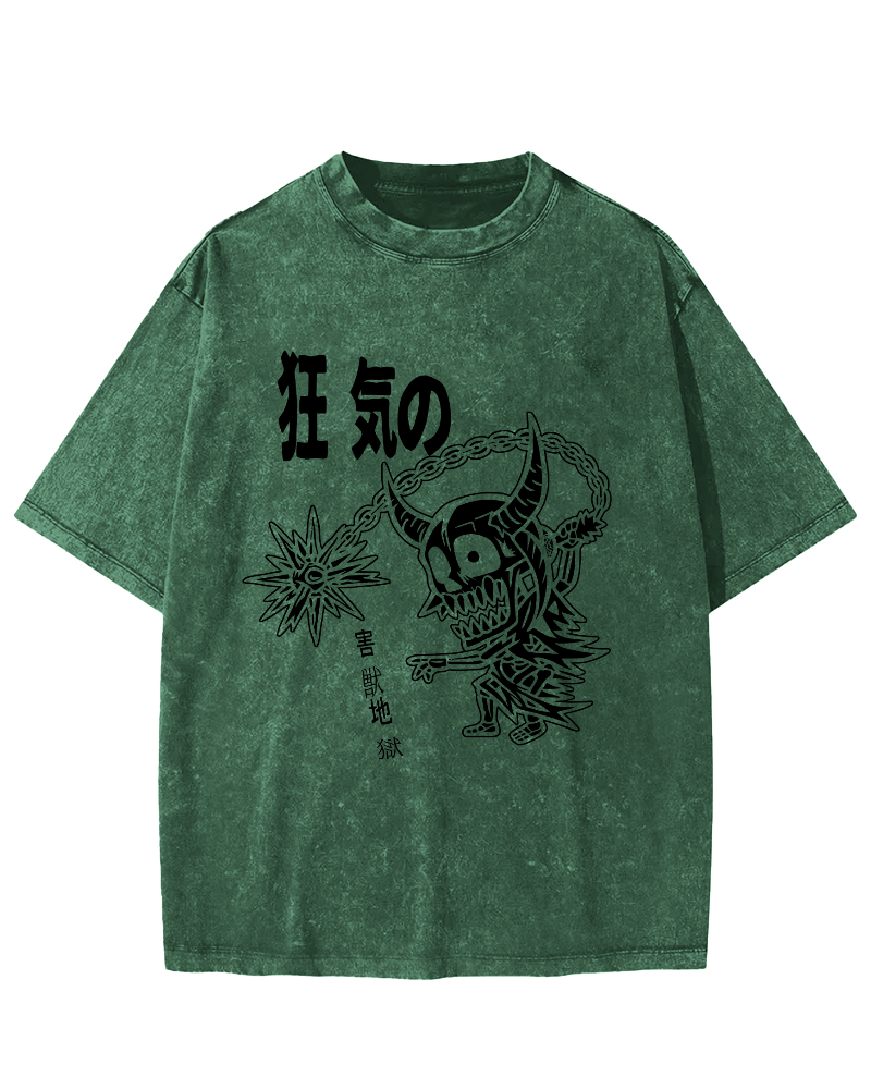 Retro Cartoon Japanese Style Vintage Washed T-shirt