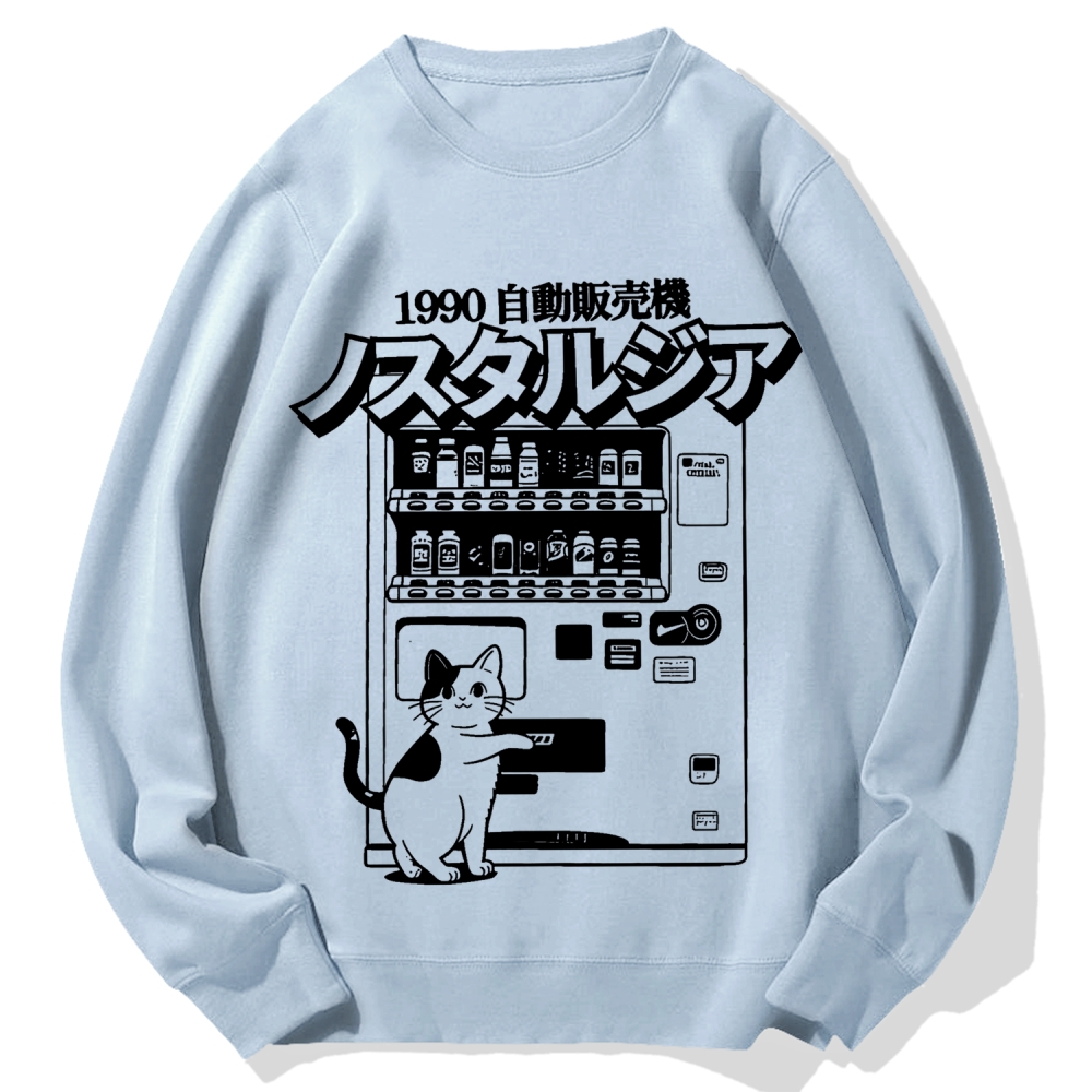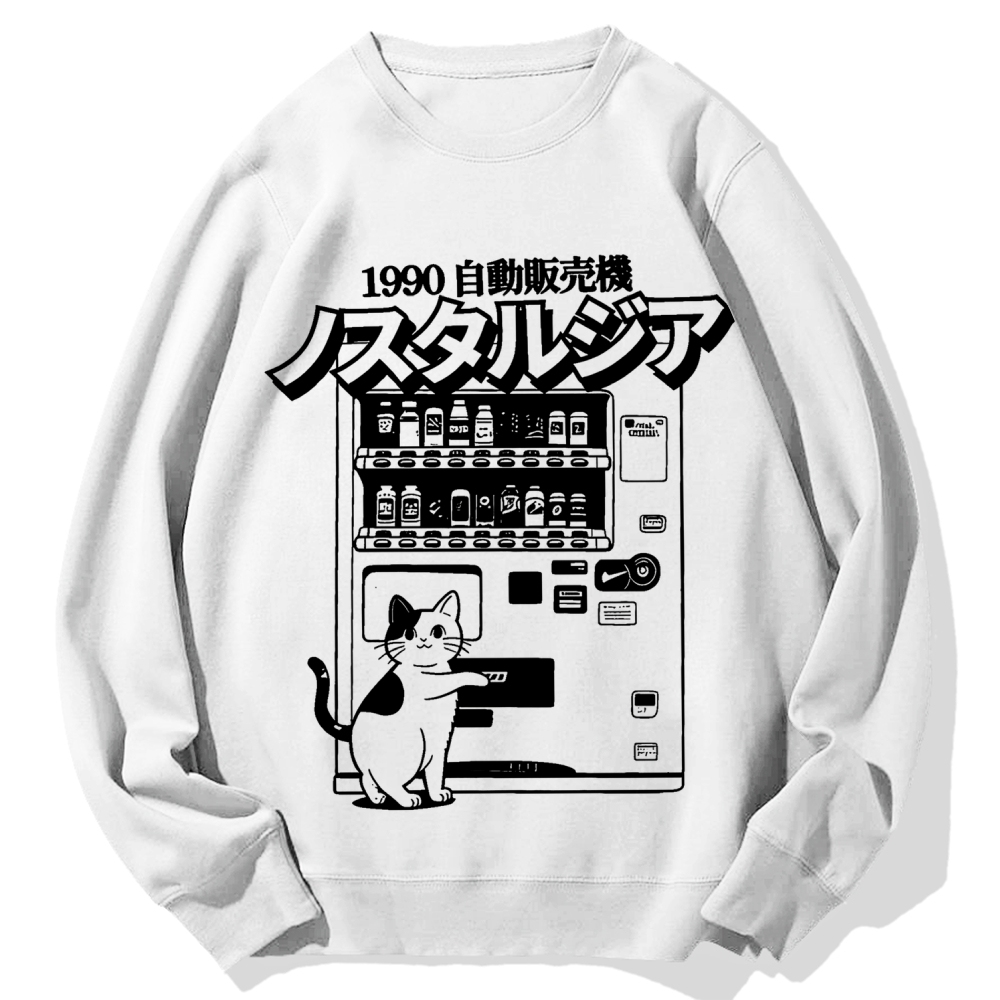 Retro Japan Cat Vending Machine 90s Anime Harajuku Nostalgic Cotton Sweatshirt