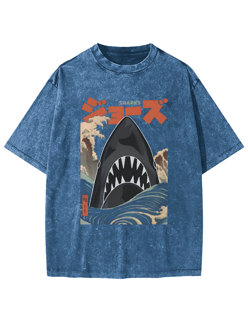 Shark Ukiyo-e in The Giant Waves Vintage Washed T-shirt