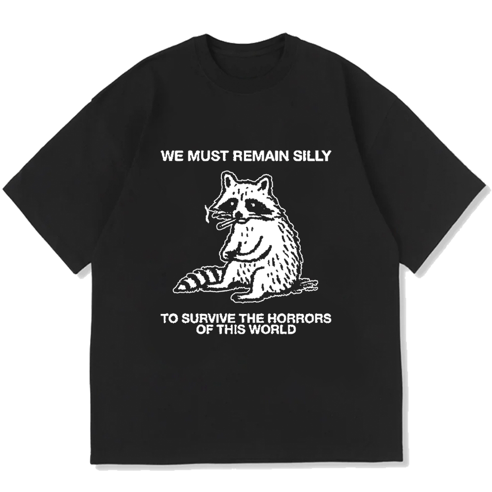 Silly Raccoon Survive World Meme Cotton casual T-shirt
