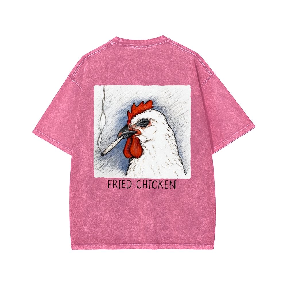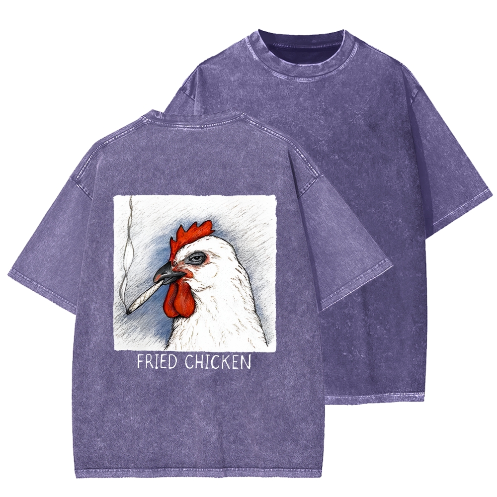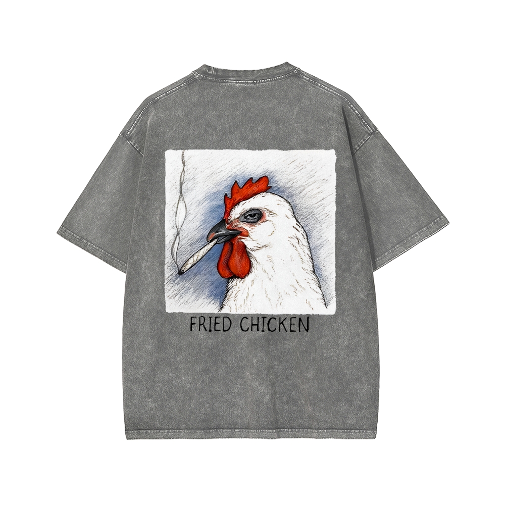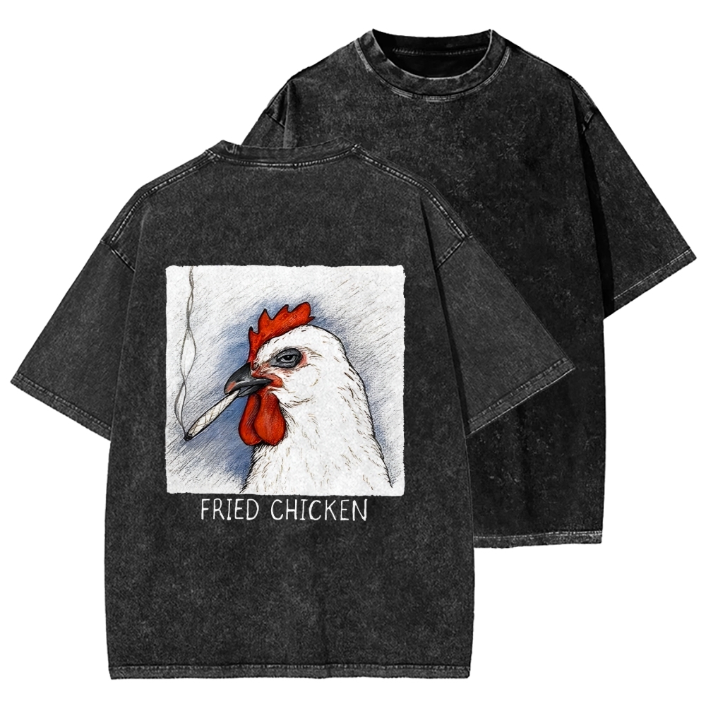 Smoking Weed Fried Chicken Back Printing Washed T-shirt
