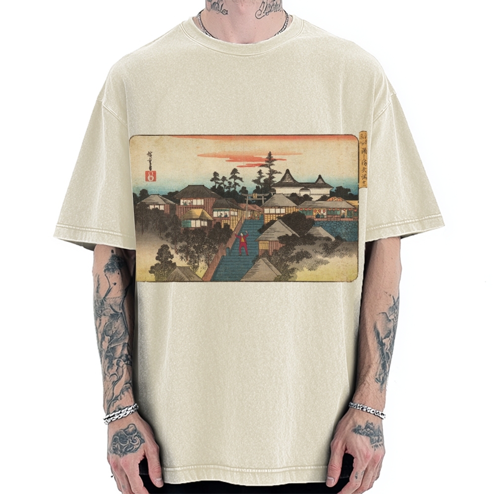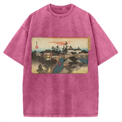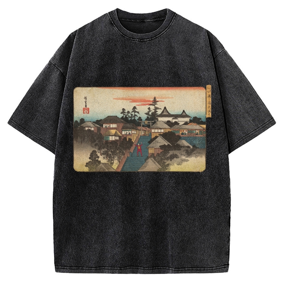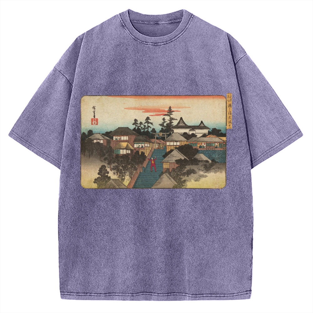 Ukiyo-e Joker Stairs Dance Japanese Traditional Painting Vintage Washed T-shirt