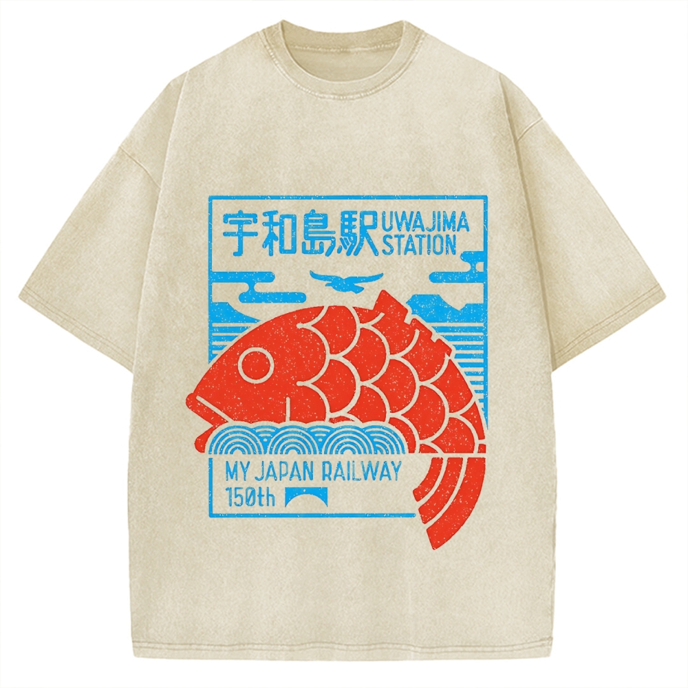 Uwajima Station Fish 150th Vintage Washed T-shirt
