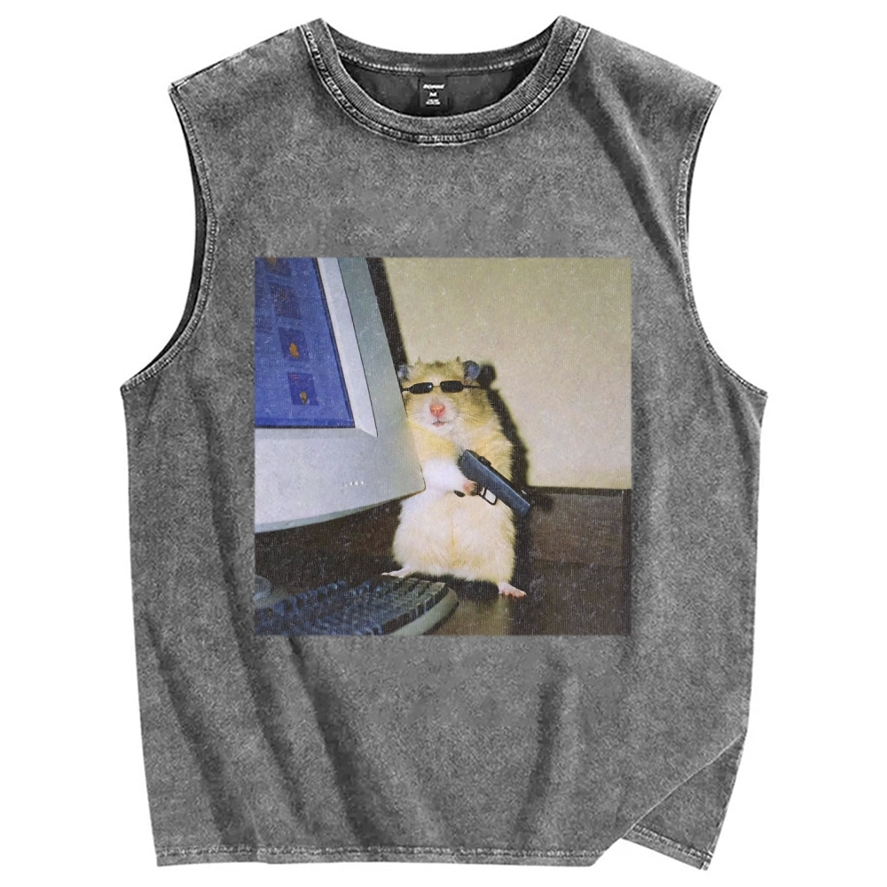 Wacky Hamster Vintage Distressed Washed Tank Top