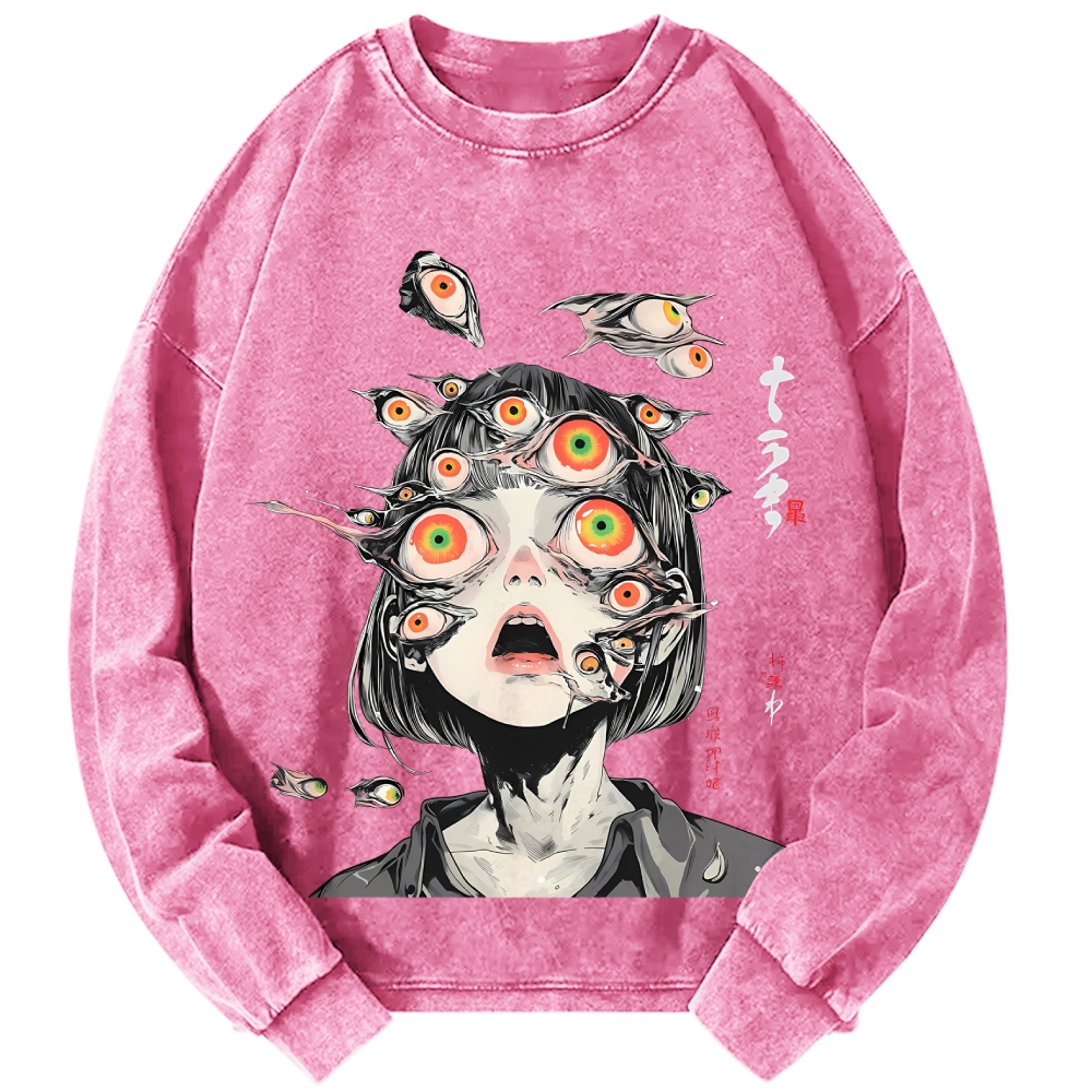 Anime Eye Horror Japanese Girl Vintage Washed Sweatshirts