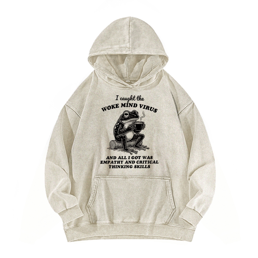 Awakened thinking virus frog I caught the woke mind virus and all I got was empathy Funny Frog Vintage Washed Hoodie