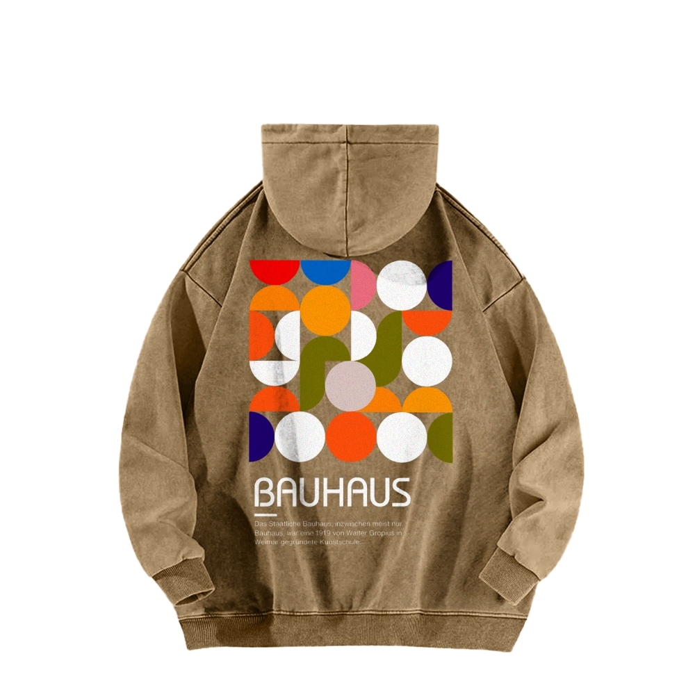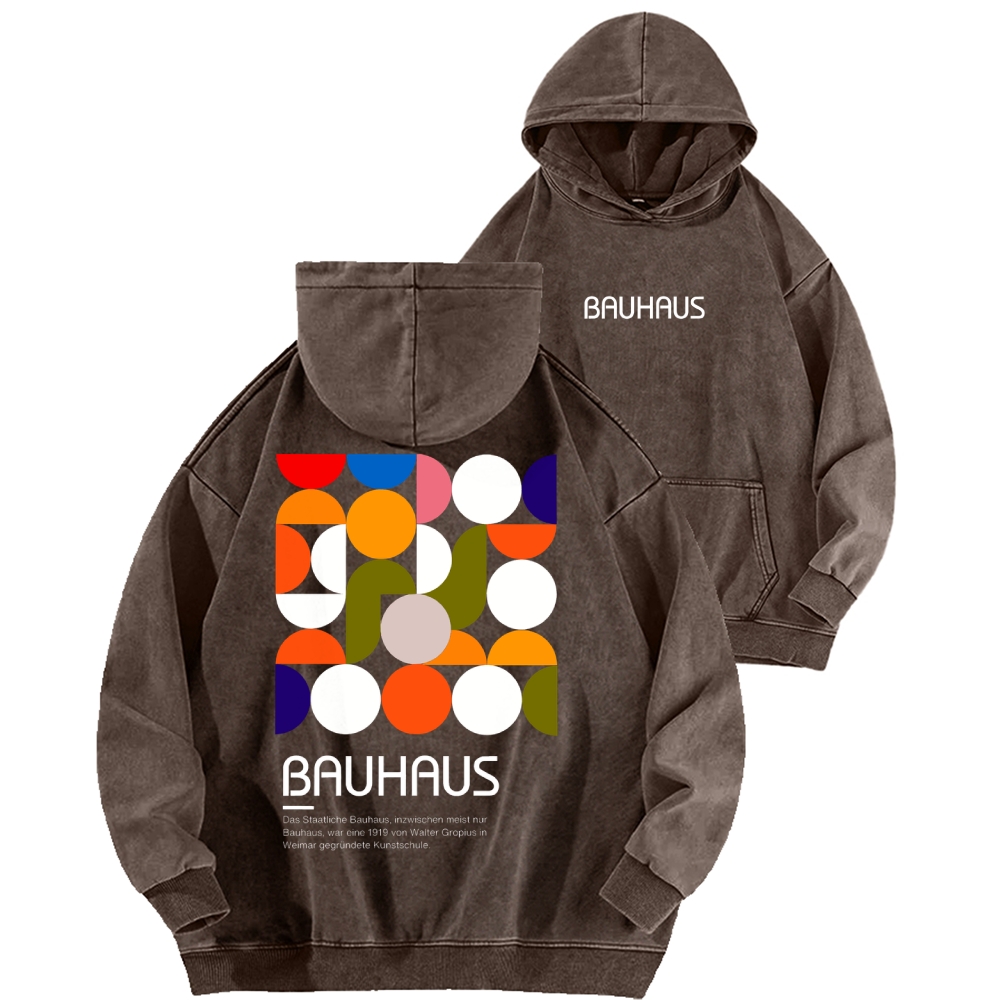Bauhaus Design Front And Back Printing Vintage Washed Hoodie