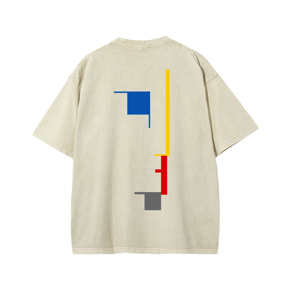 Bauhaus Emblem Front And Back Printing Washed T-shirt