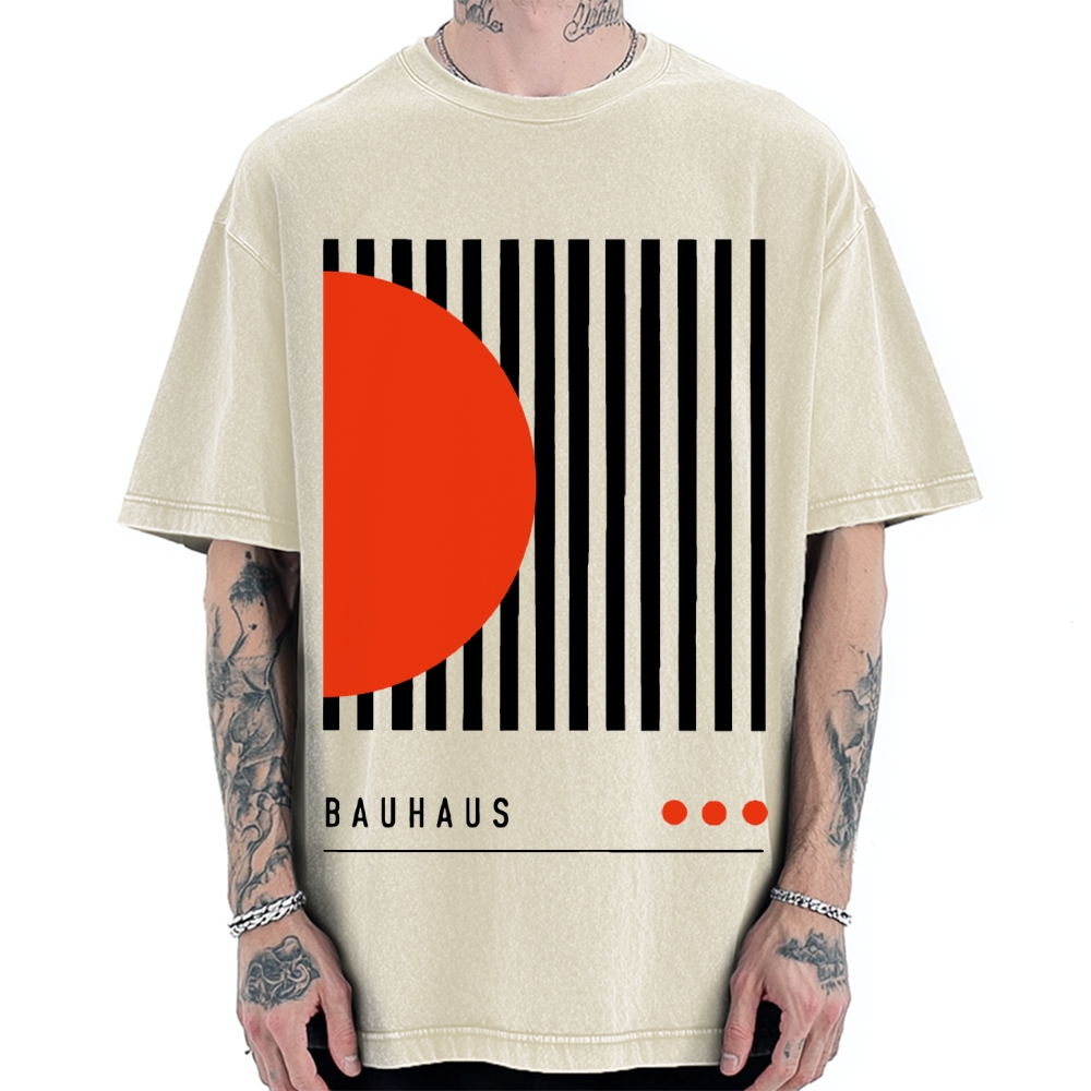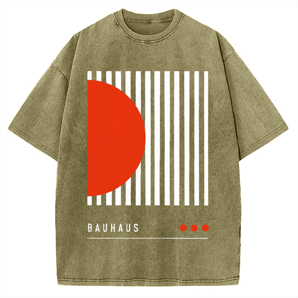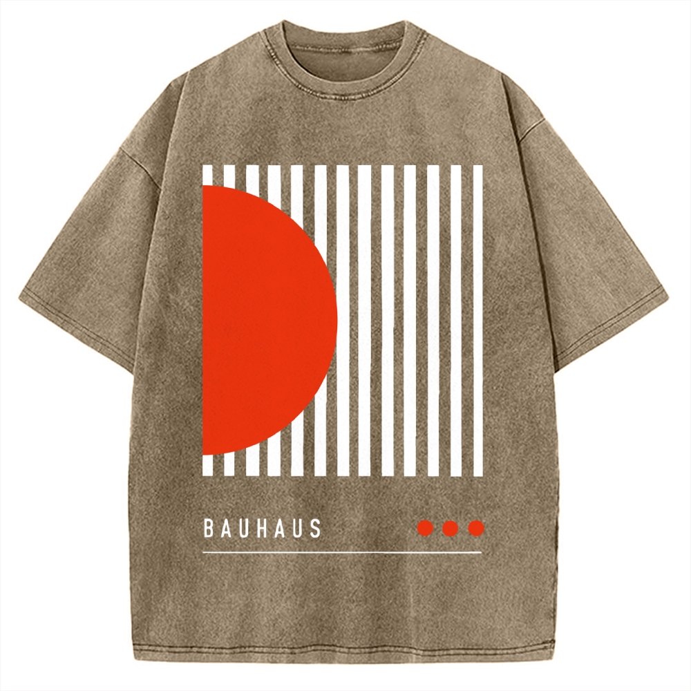 Bauhaus Geometric Lines Printed Vintage Washed T-shirt