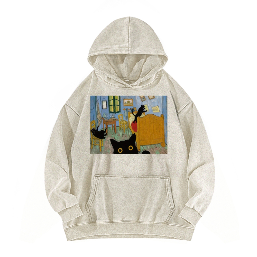 Bedroom Cat Van Gogh Vintage Washed Hoodie