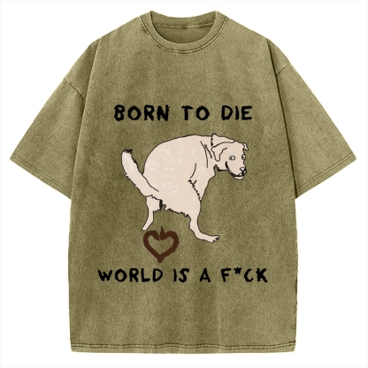 Born To Die World Is A F*ck Funny Dog Vintage Washed T-shirt