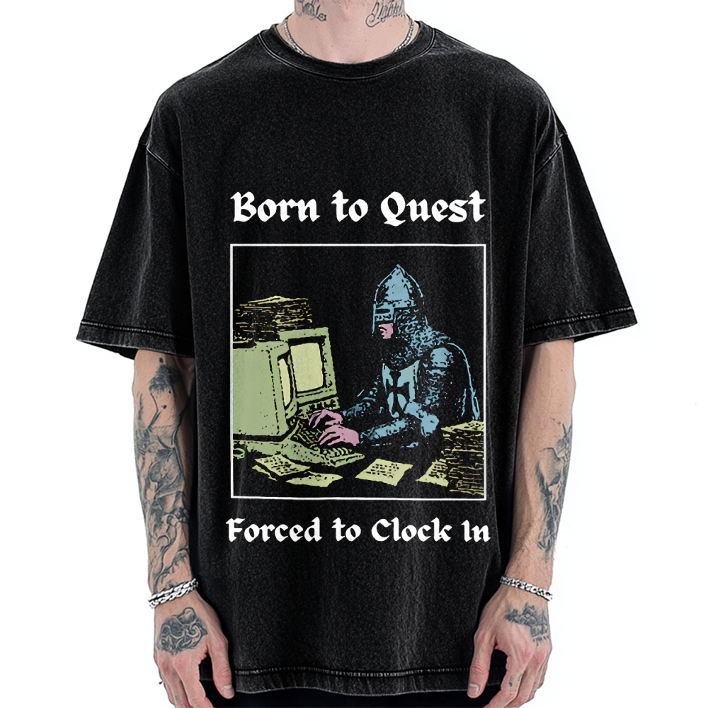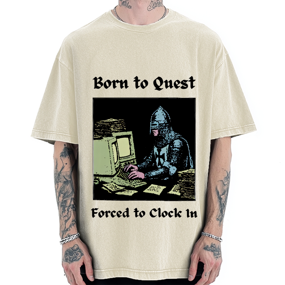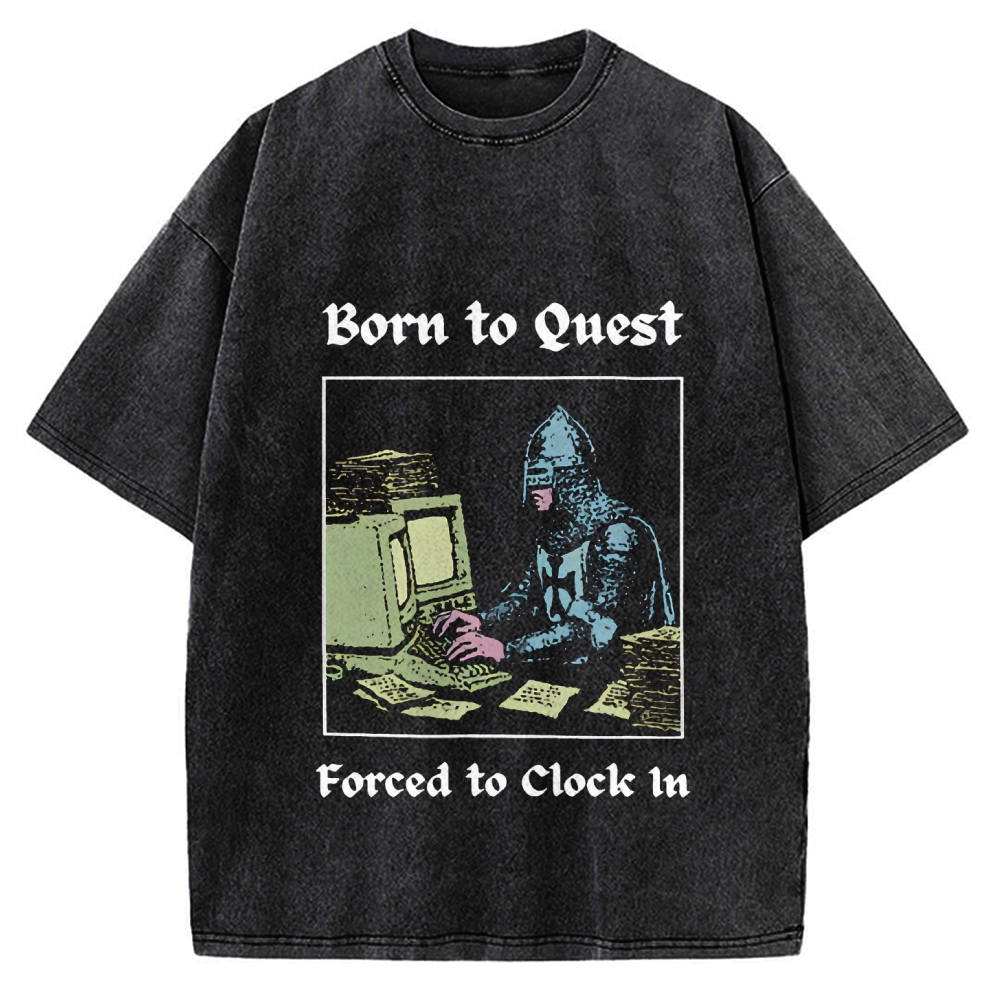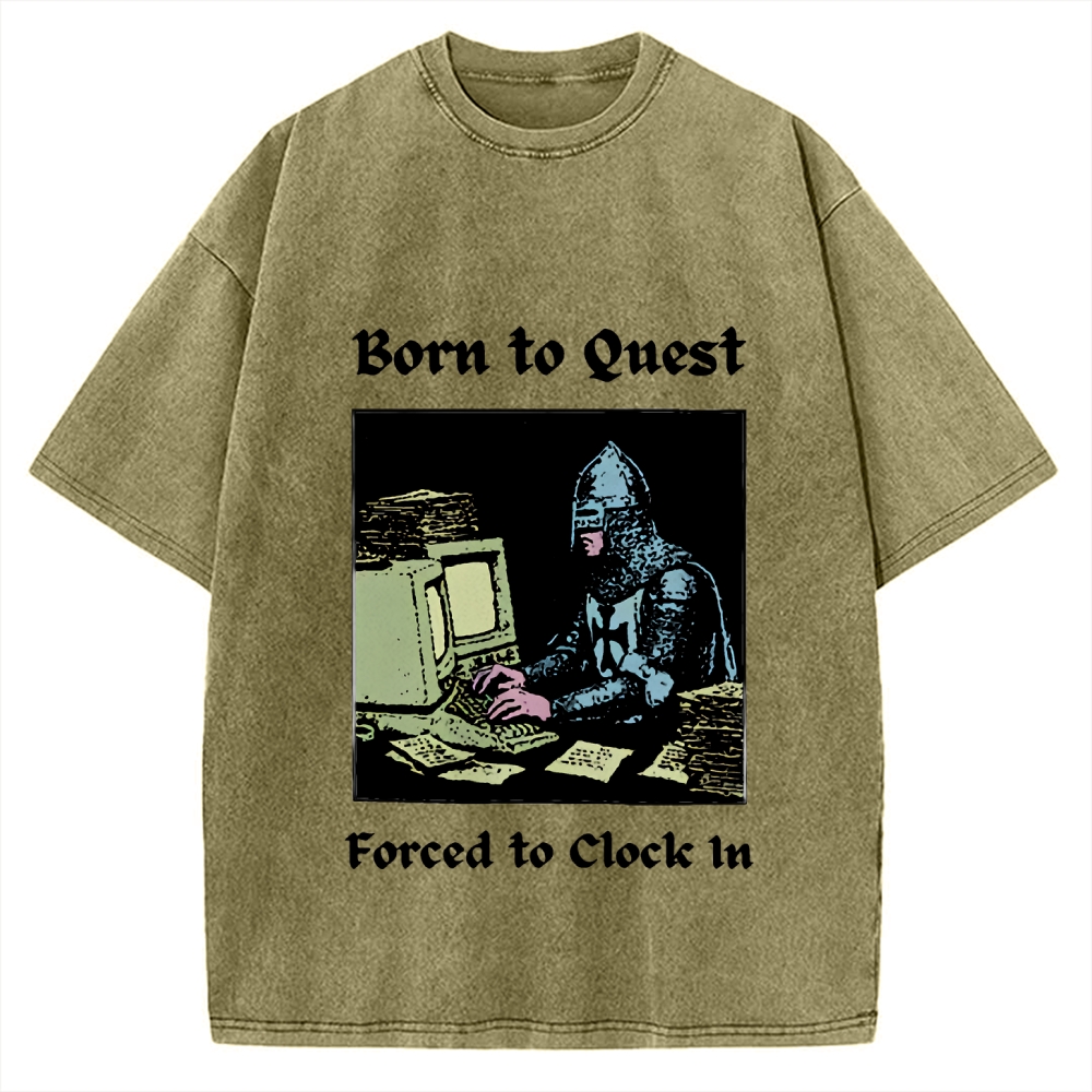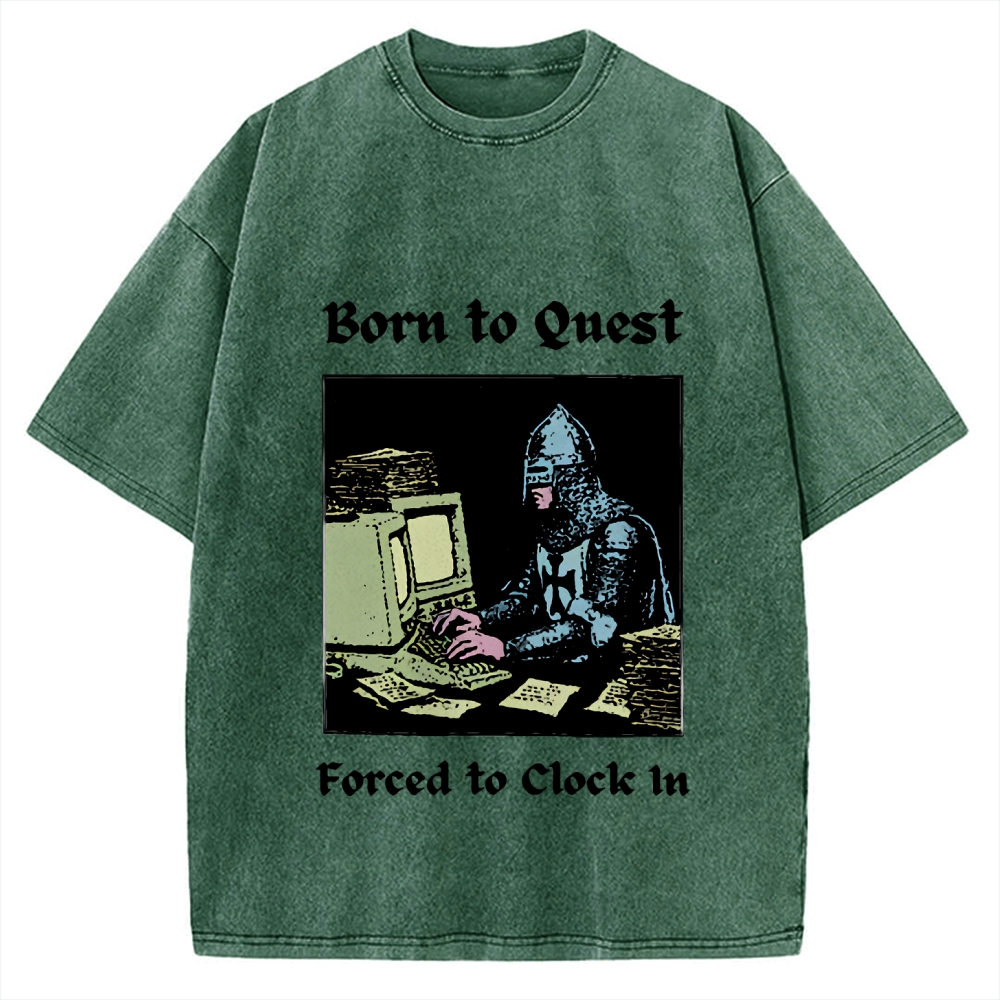 Born to Quest Forced to Clock In Funny Vintage Washed T-shirt