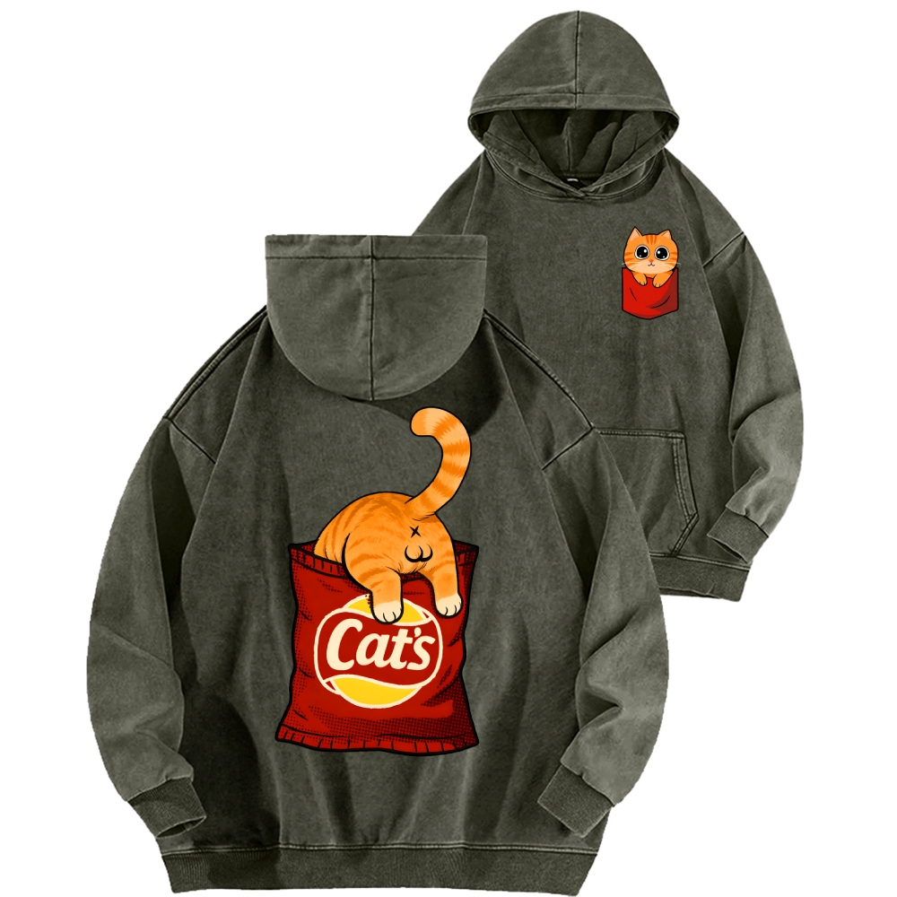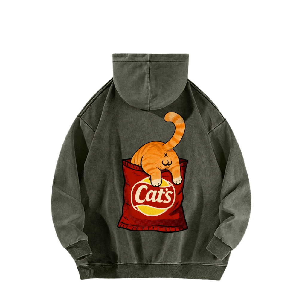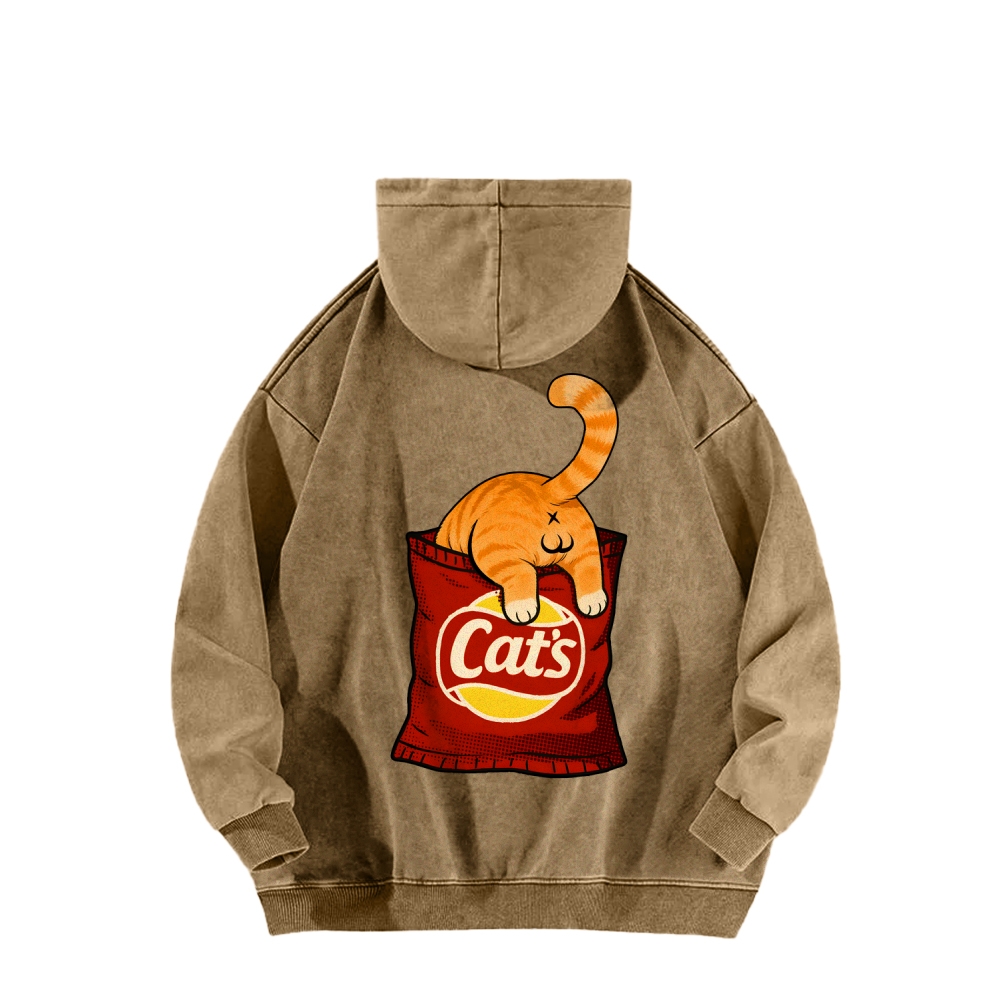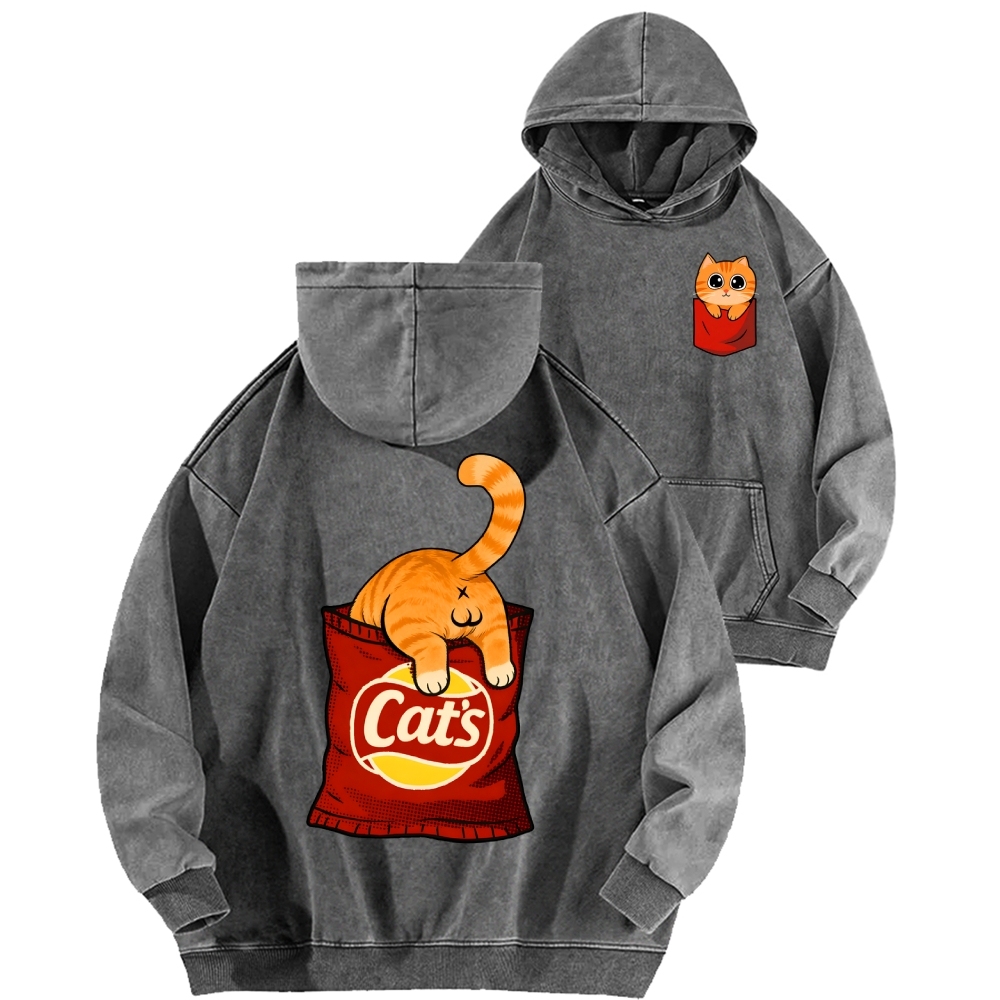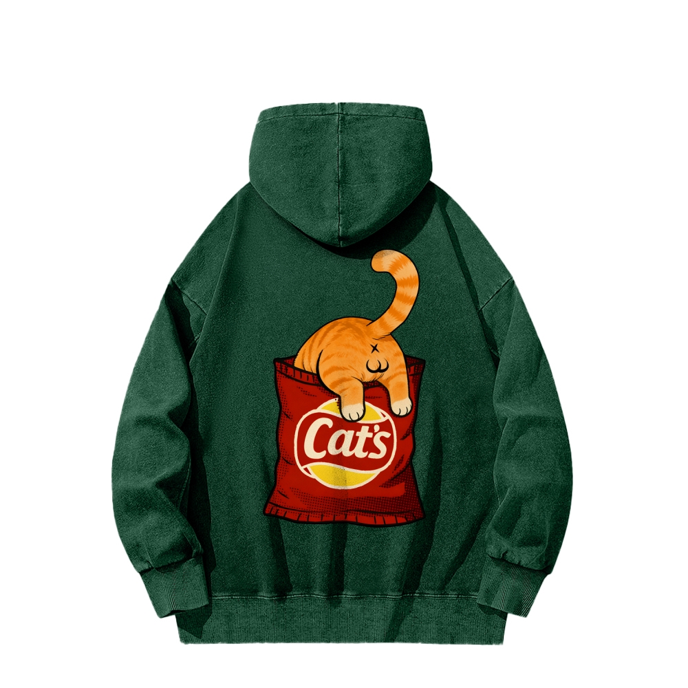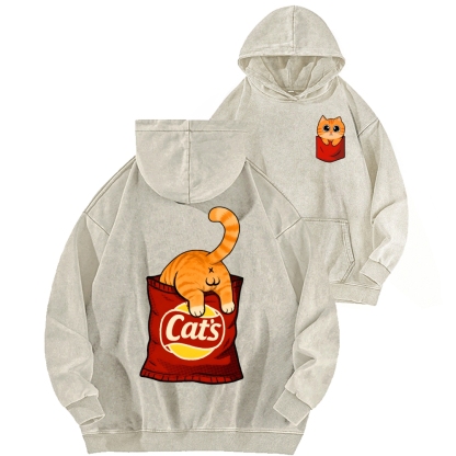 CAT’S CHIPS Front And Back Printing Vintage Washed Hoodie