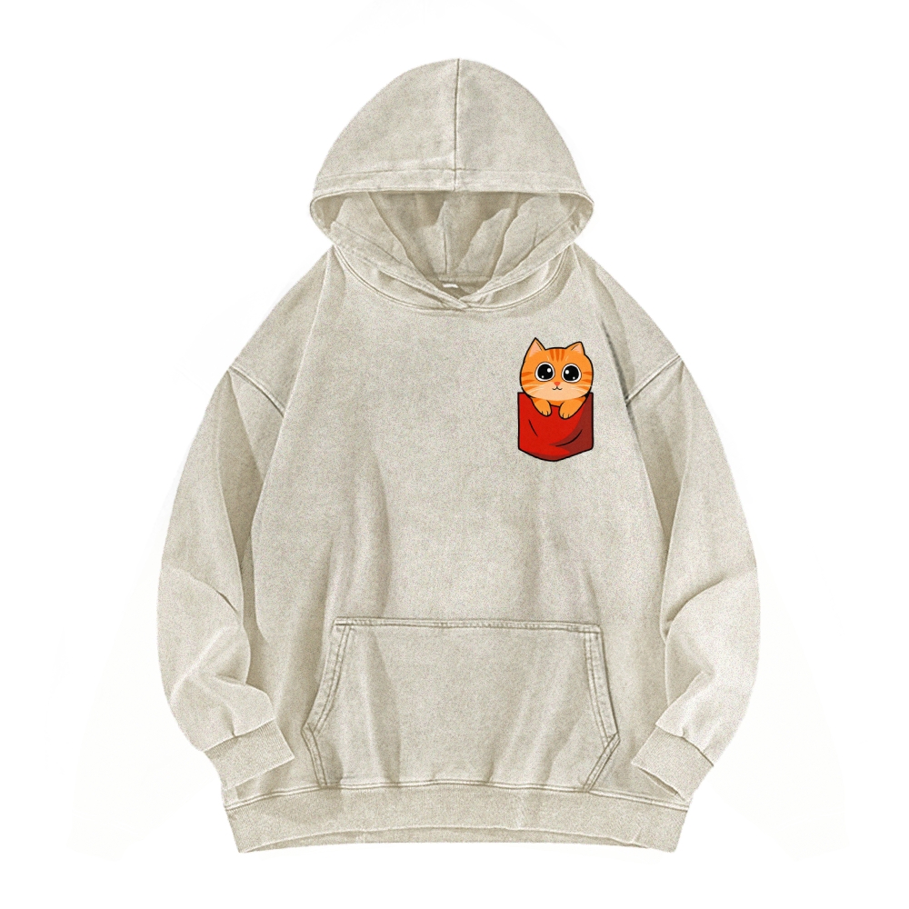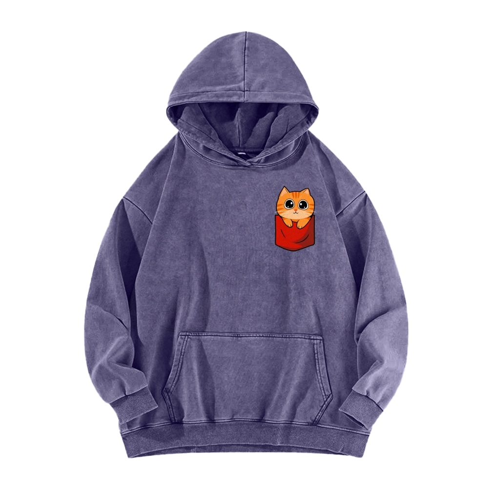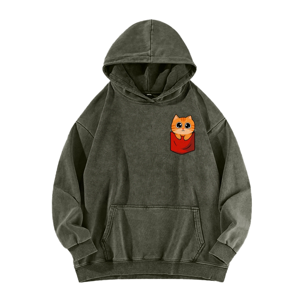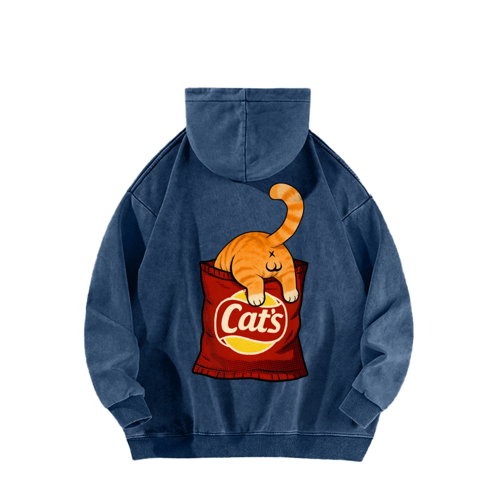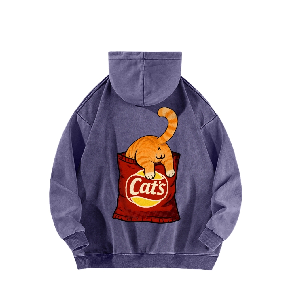CAT’S CHIPS Front And Back Printing Vintage Washed Hoodie