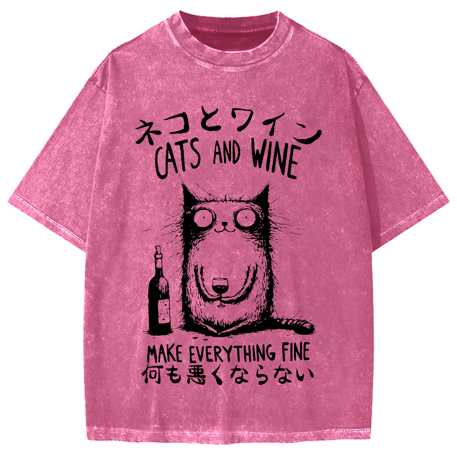 Cat and Wine Make Everything Fine Vintage Washed T-shirt