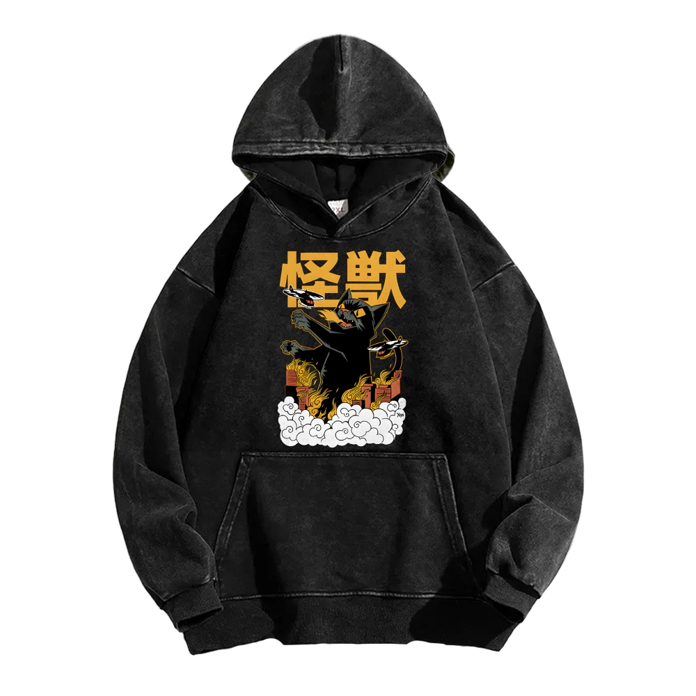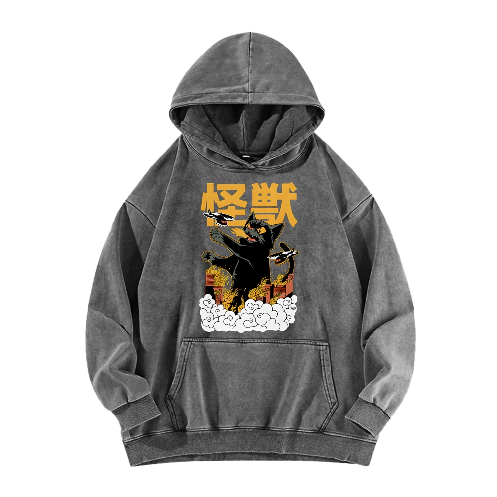 Cat Destroyer Kaiju Vintage Washed Hoodie