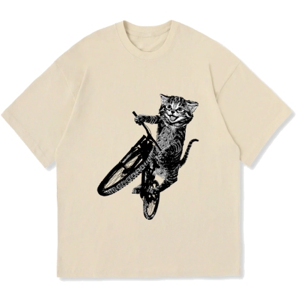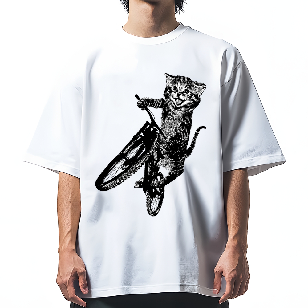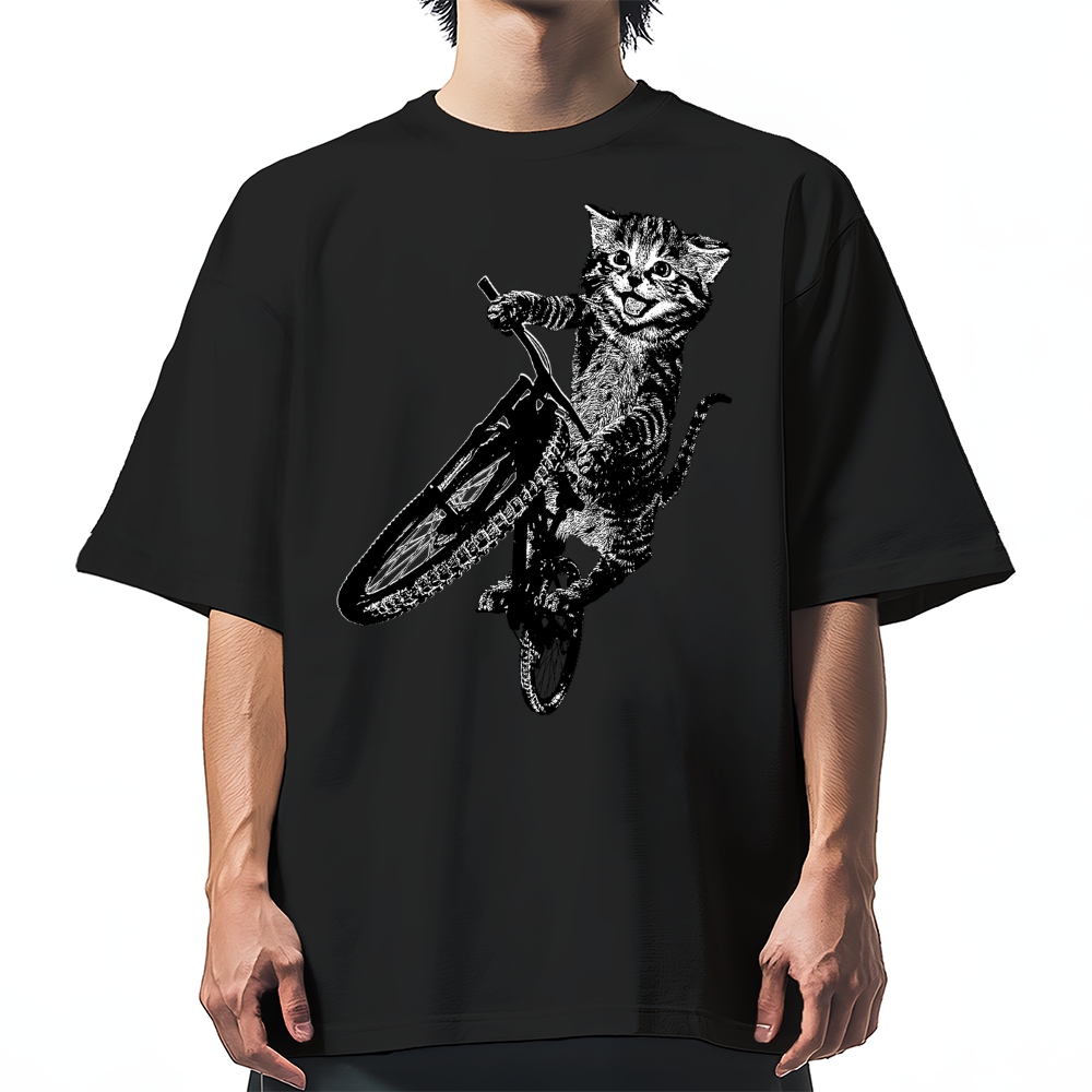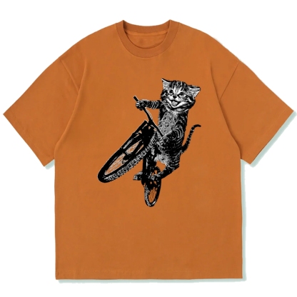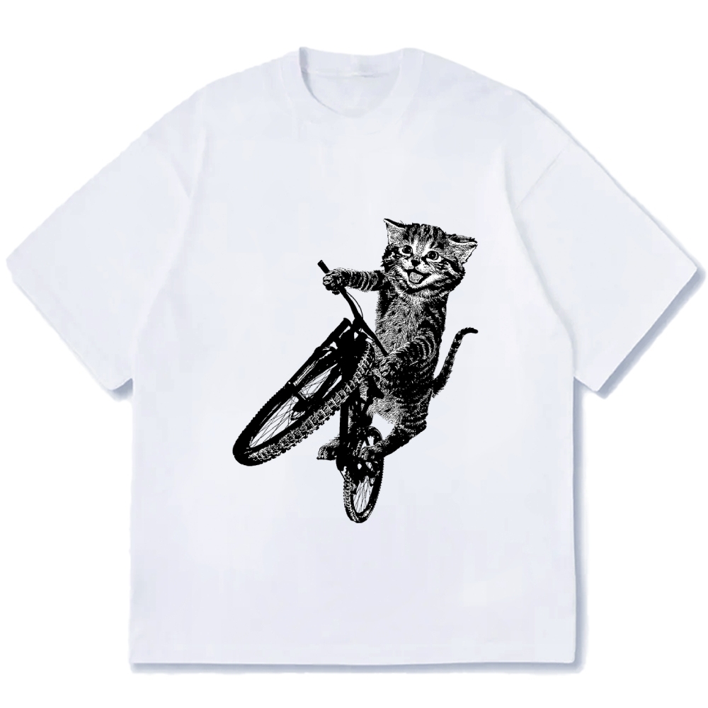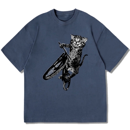Cat Riding A Bicycle Cotton casual T-shirt