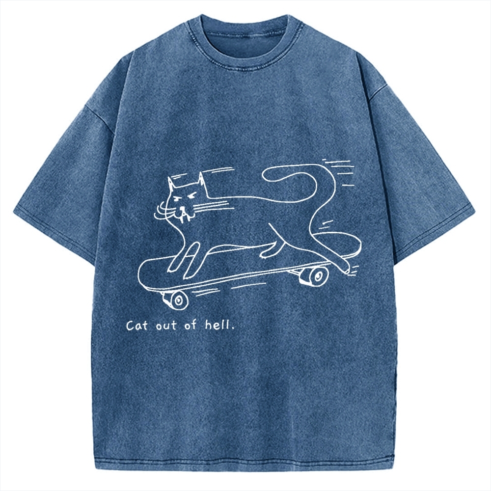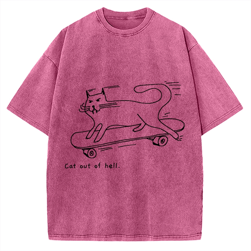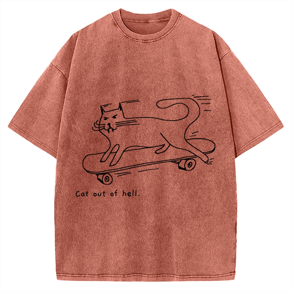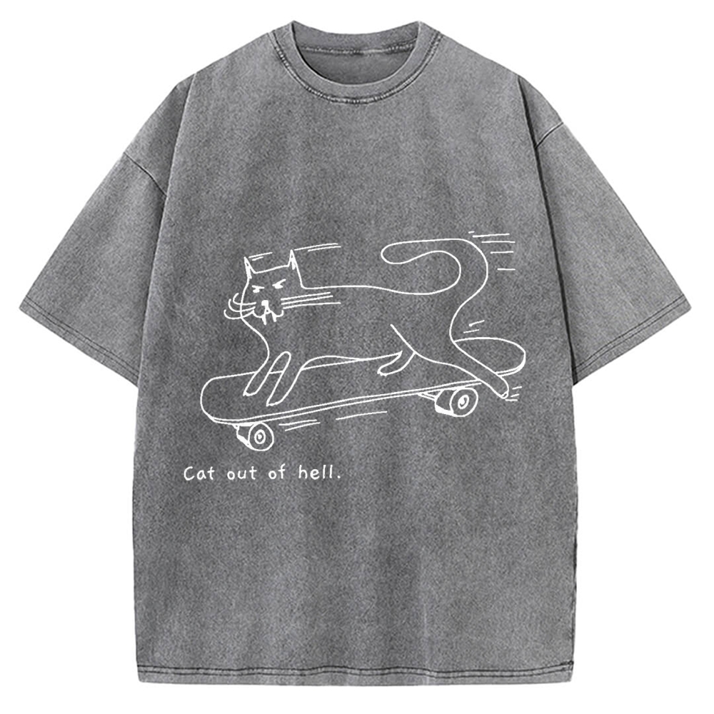 Cat Skateboarding Vintage Washed T-shirt