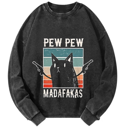 Cat with Guns Vintage Washed Sweatshirts