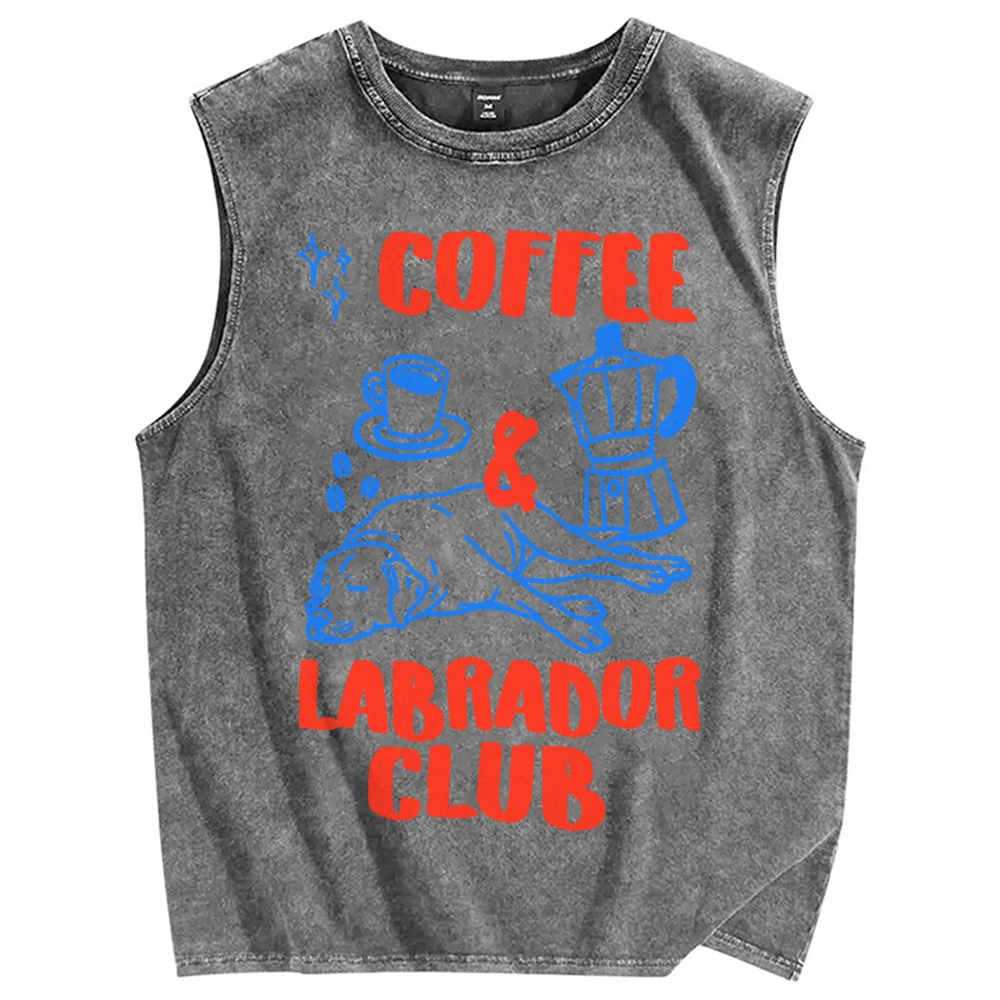Coffee Labrador Club Vintage Distressed Washed Tank Top
