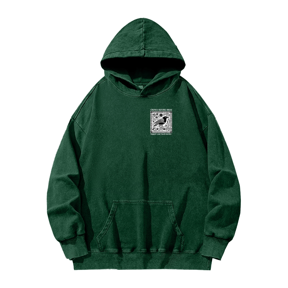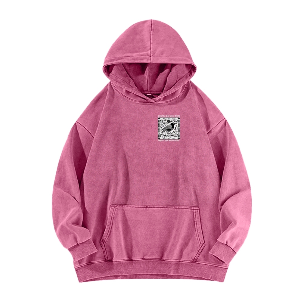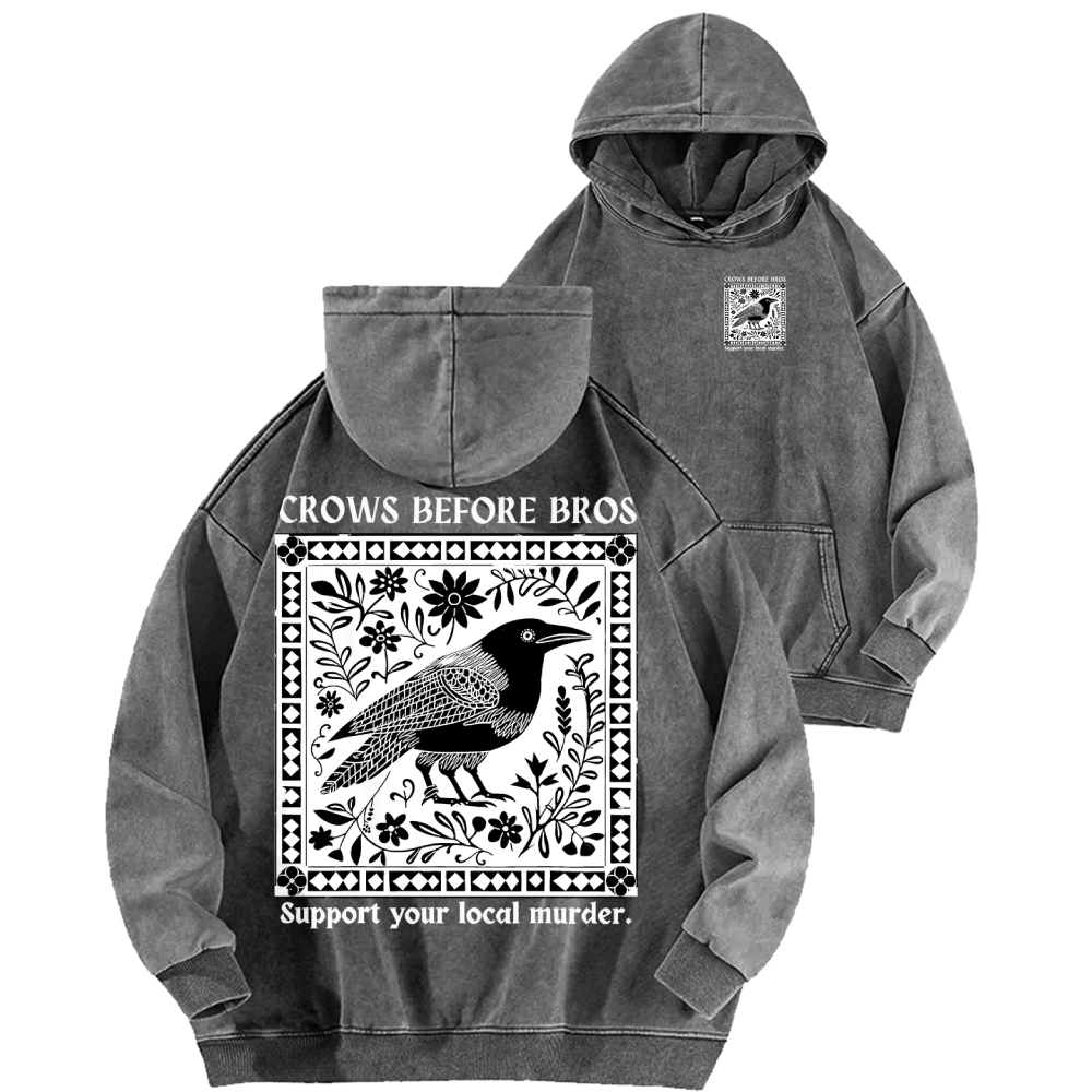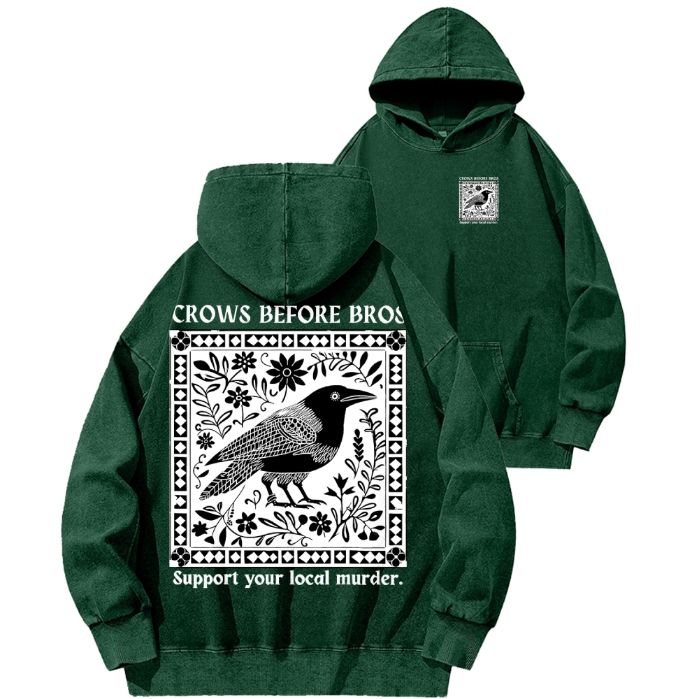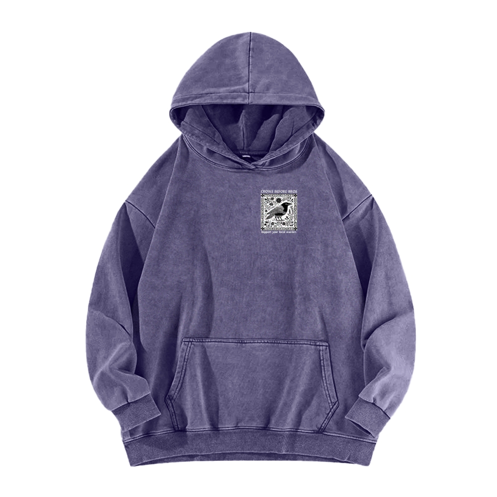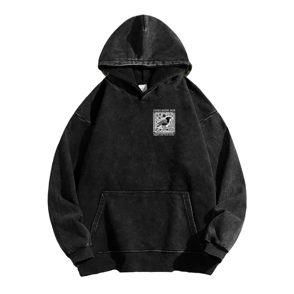 Crows Before Bros Support Your Local Murder Front And Back Printing Vintage Washed Hoodie