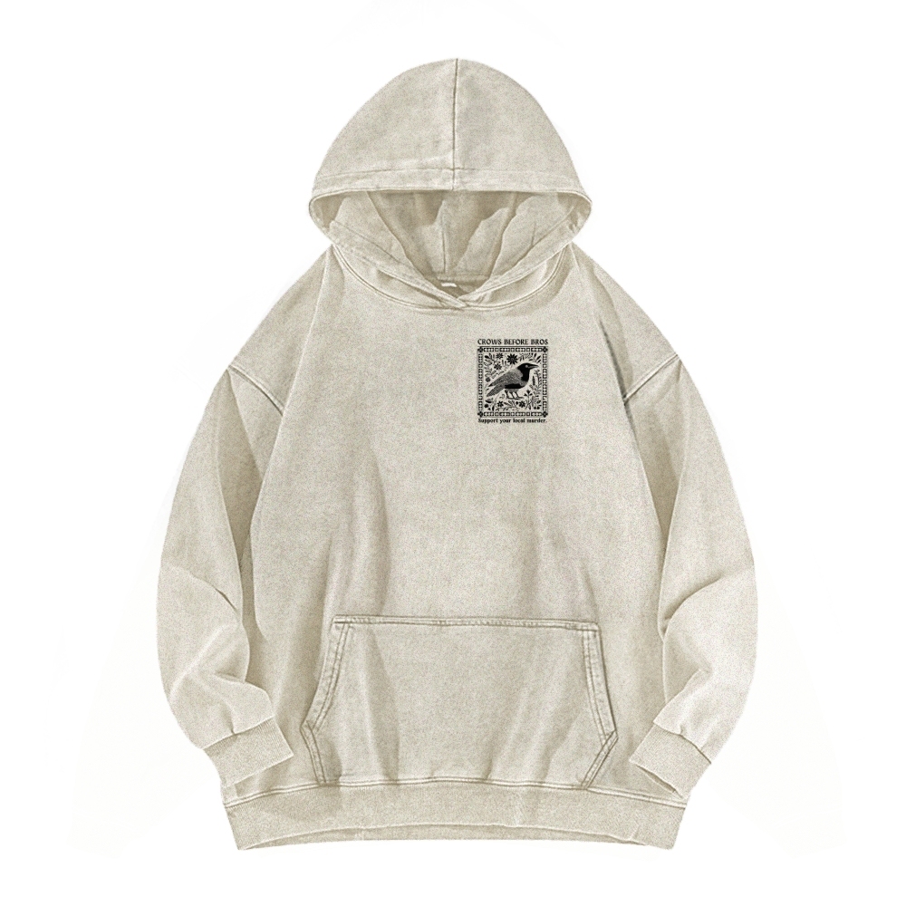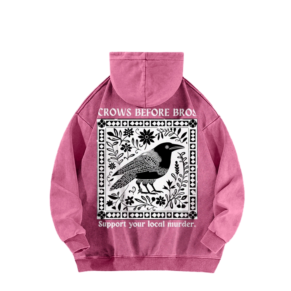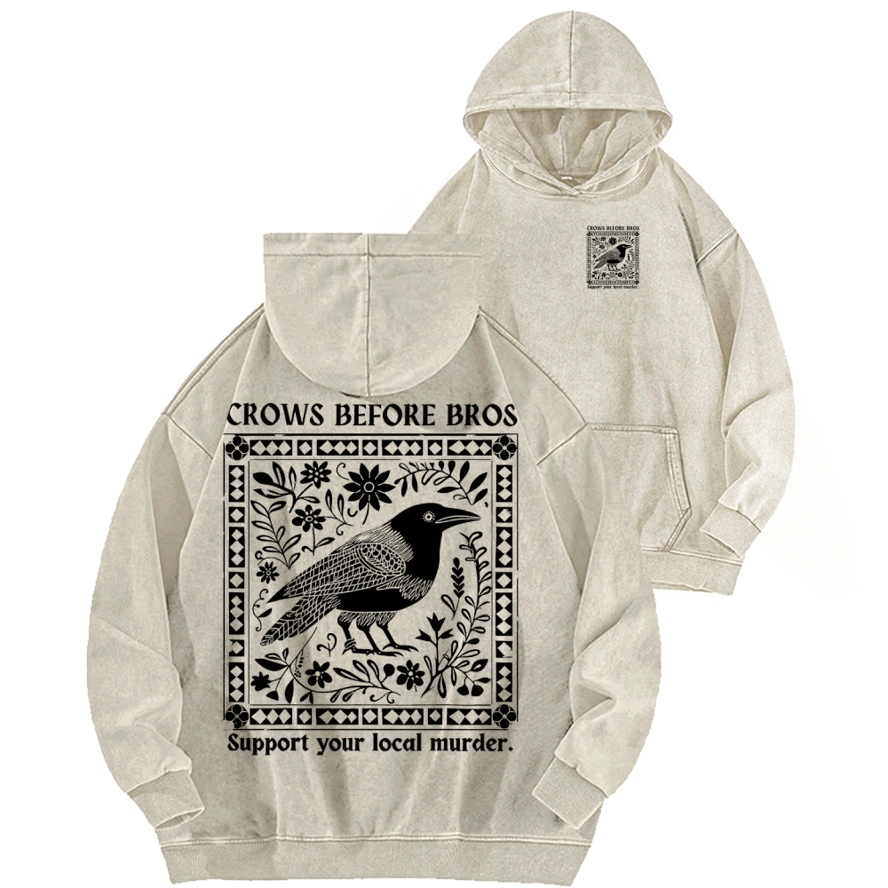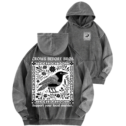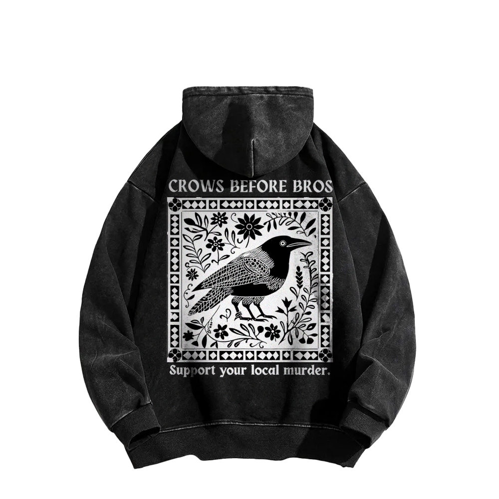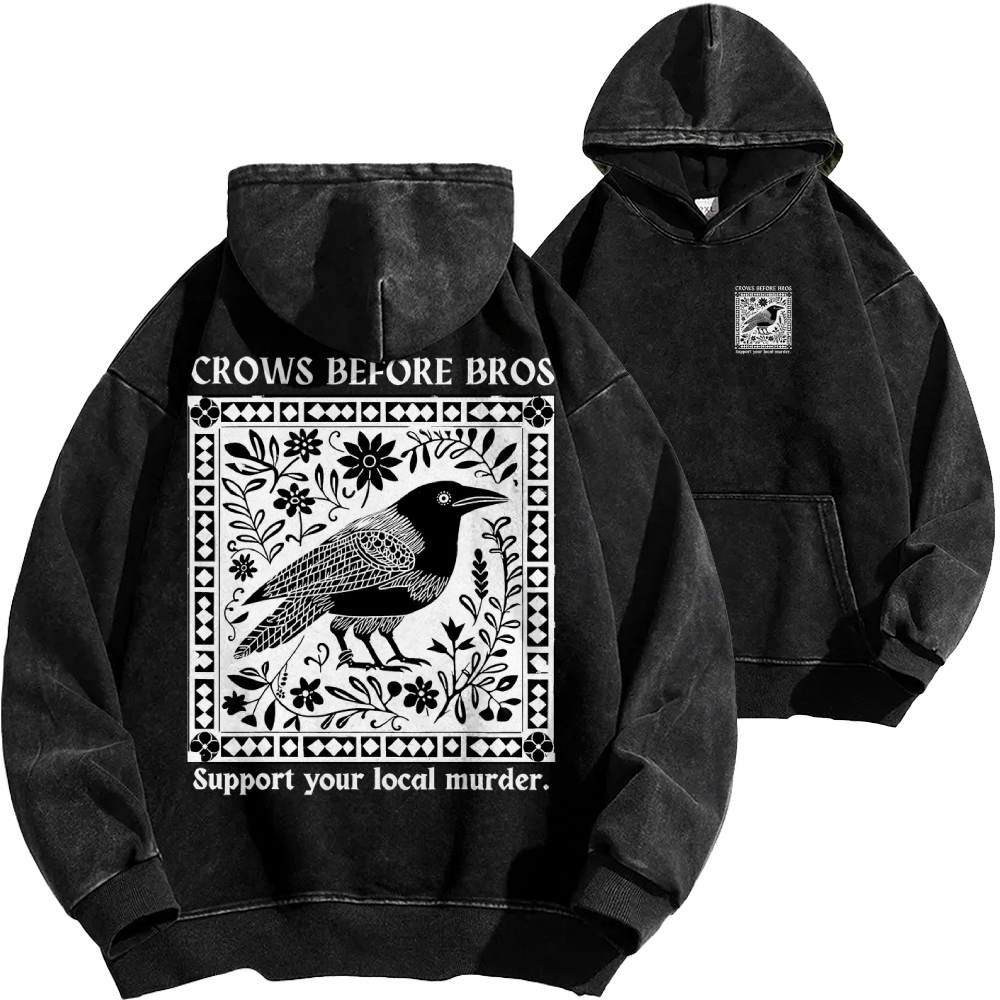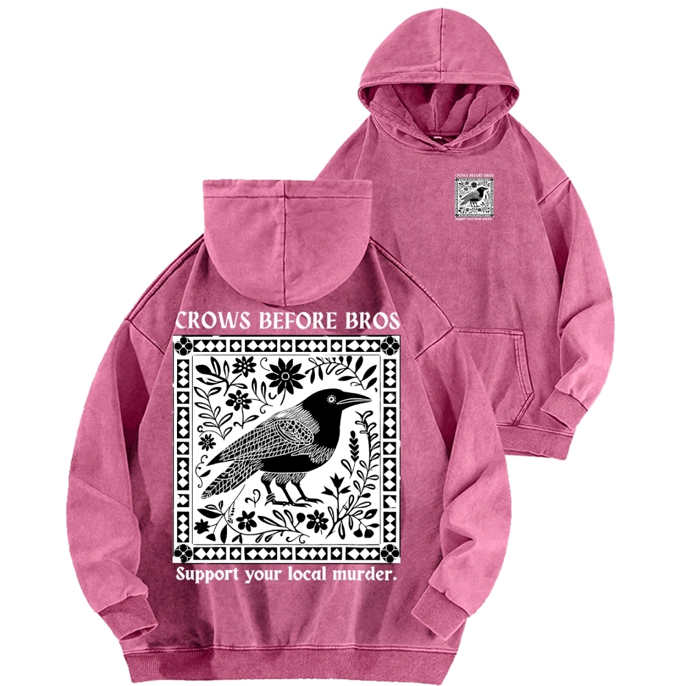 Crows Before Bros Support Your Local Murder Front And Back Printing Vintage Washed Hoodie
