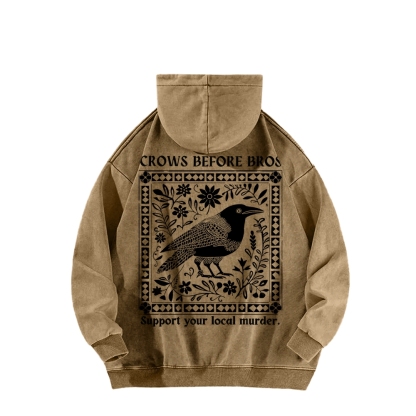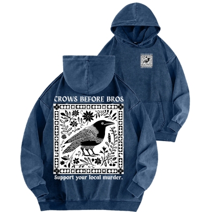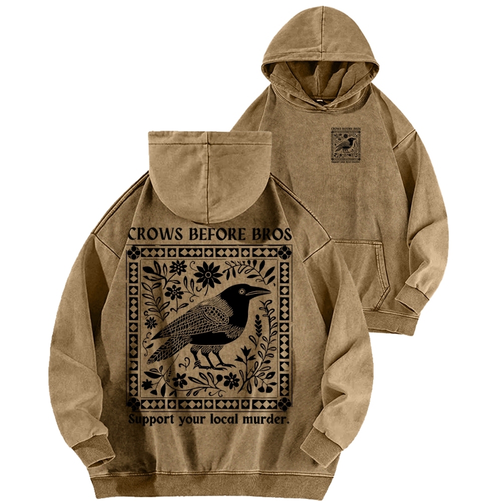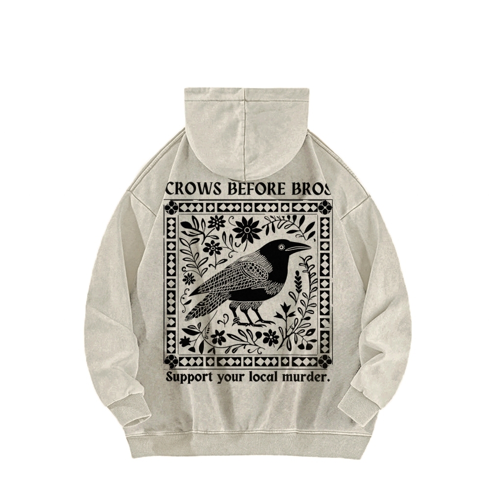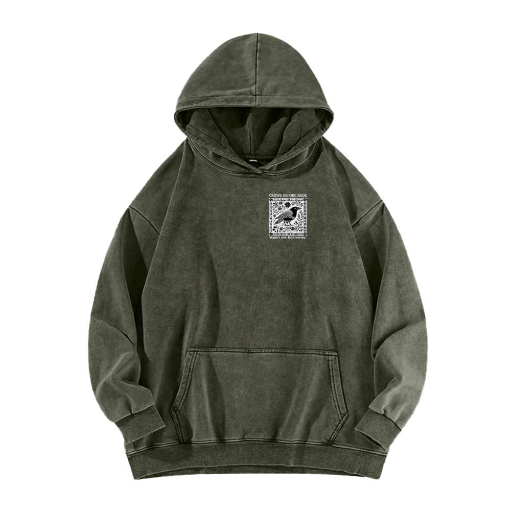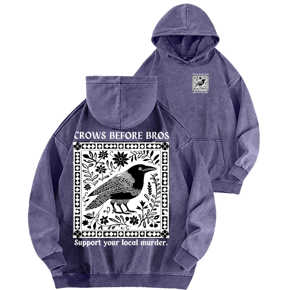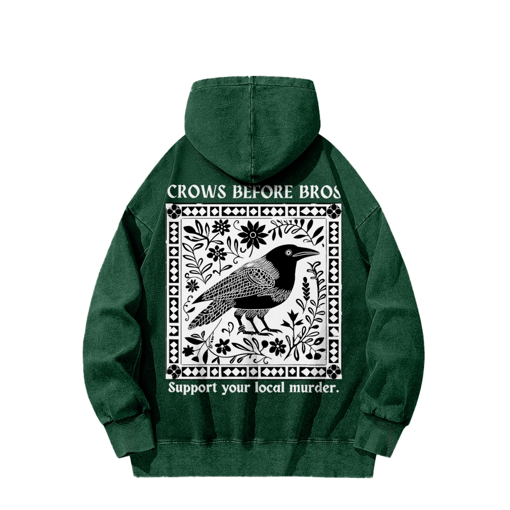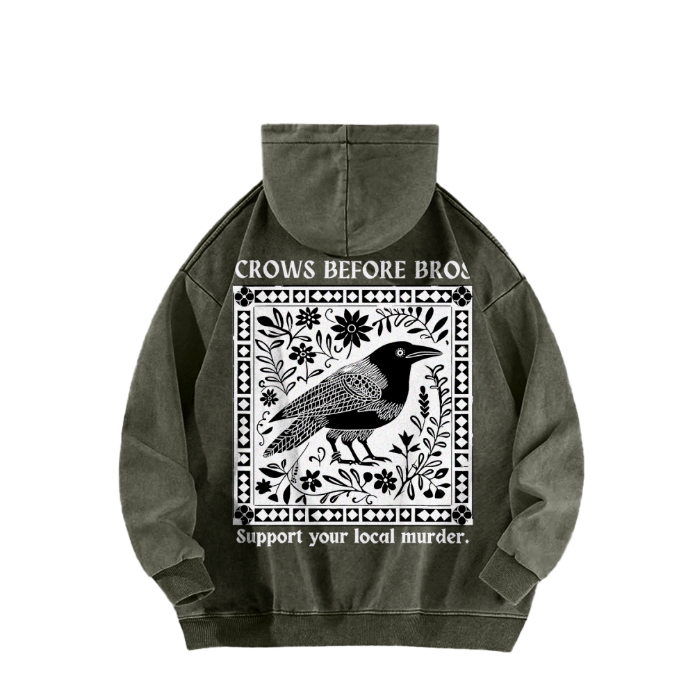 Crows Before Bros Support Your Local Murder Front And Back Printing Vintage Washed Hoodie