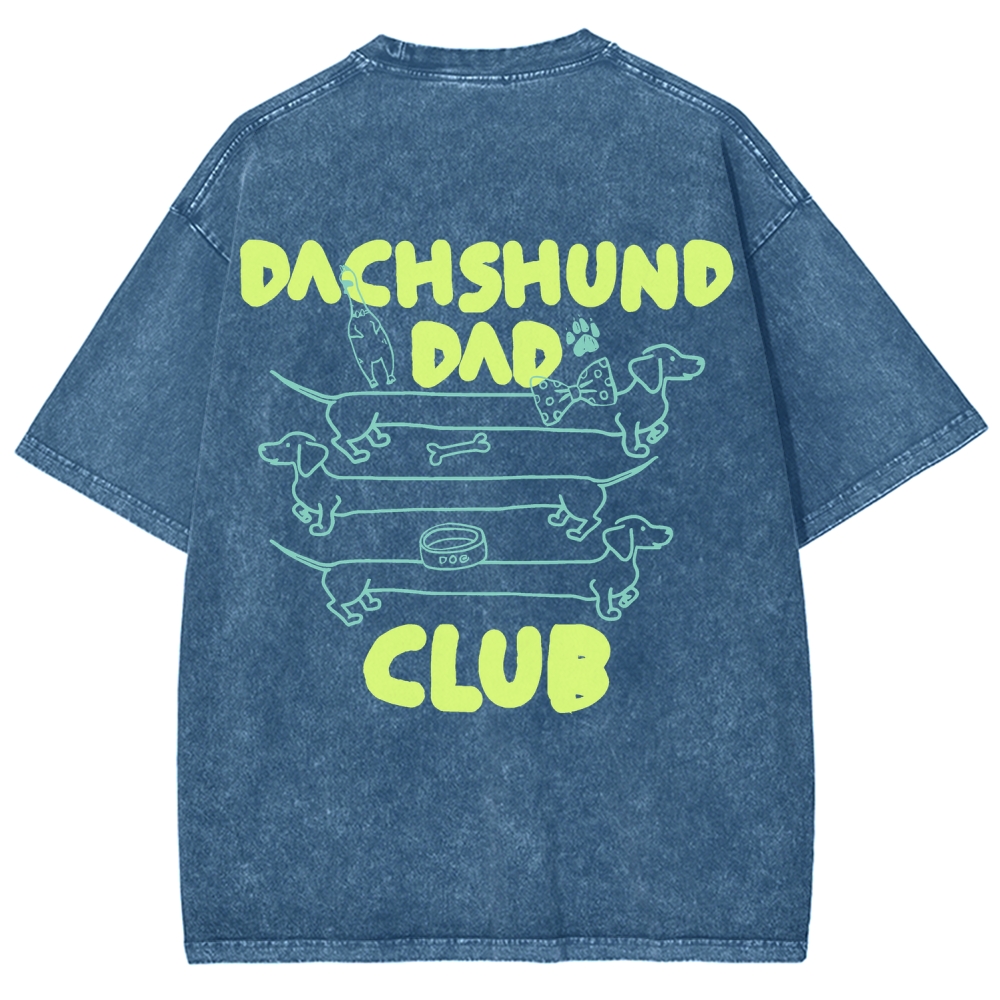 Dachshund Dad Club Dog Back printing Vintage Washed T-shirt