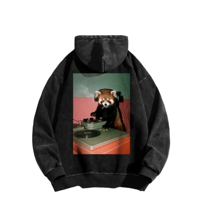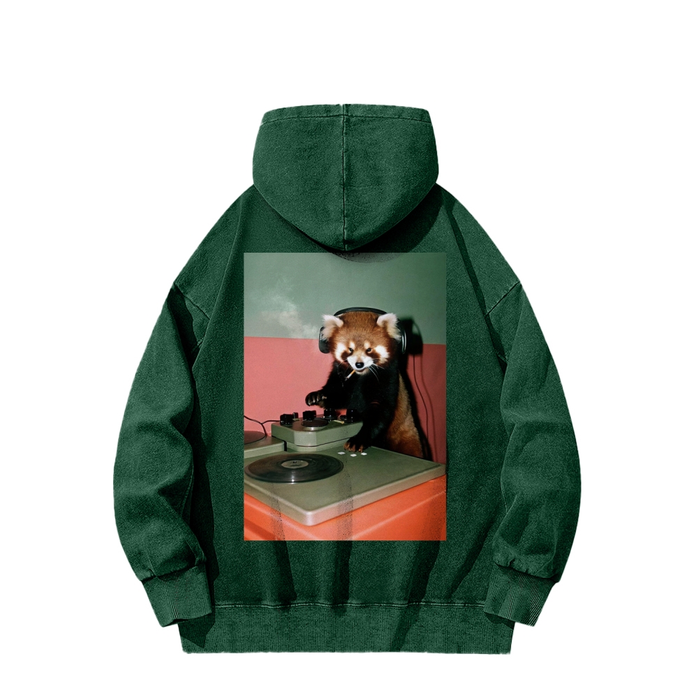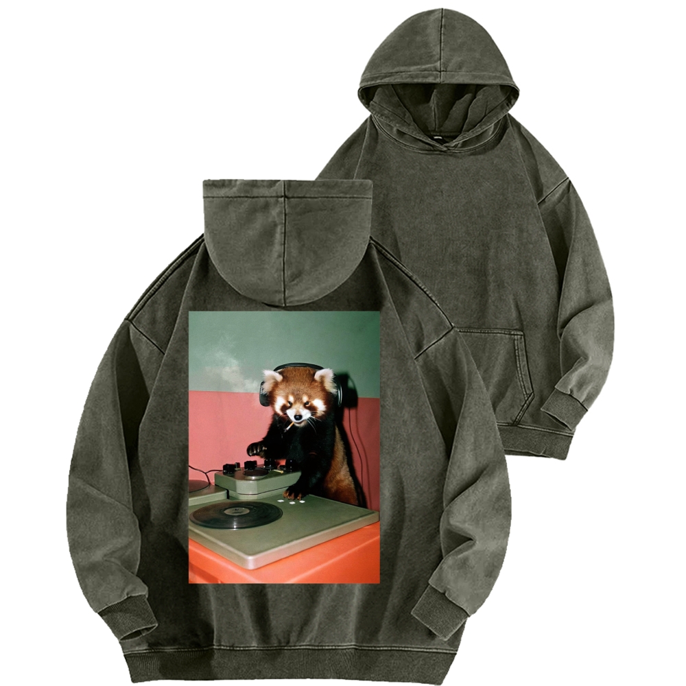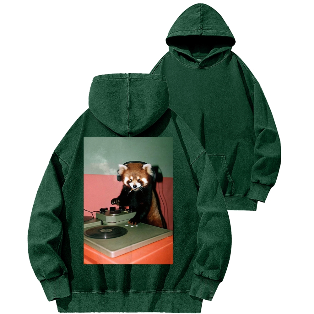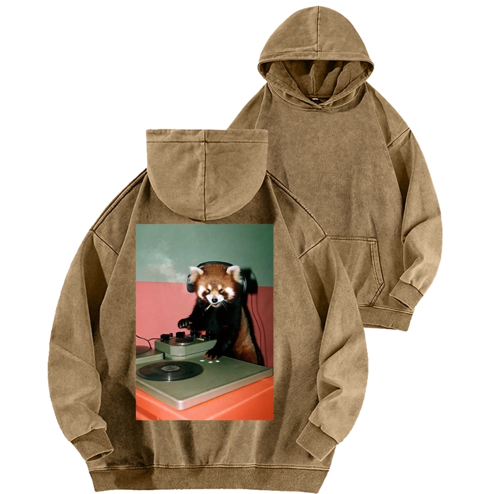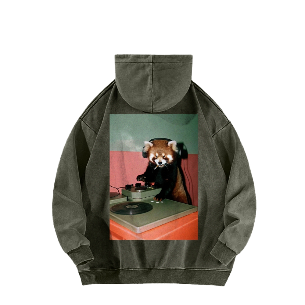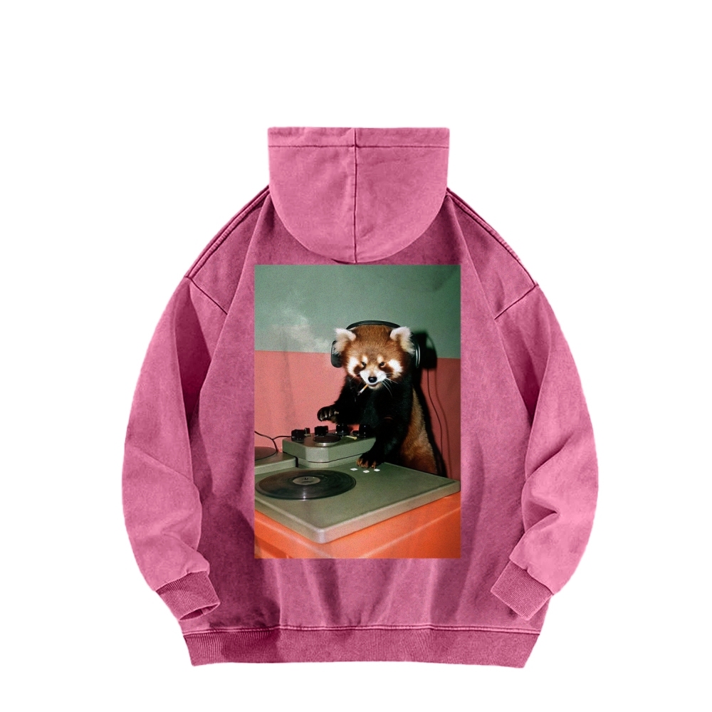 DJ Red Panda Smoke Back Printing Vintage Washed Hoodie