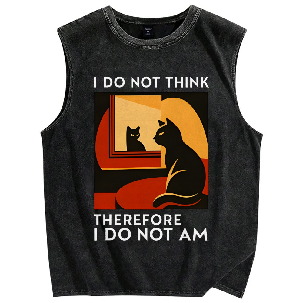 Do Not Think Therefore I Do Not Am Funny Cat Vintage Distressed Washed Tank Top
