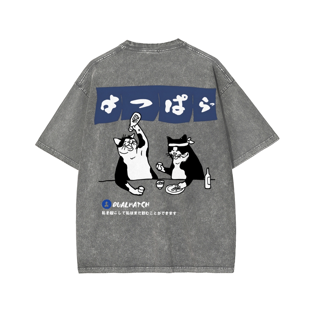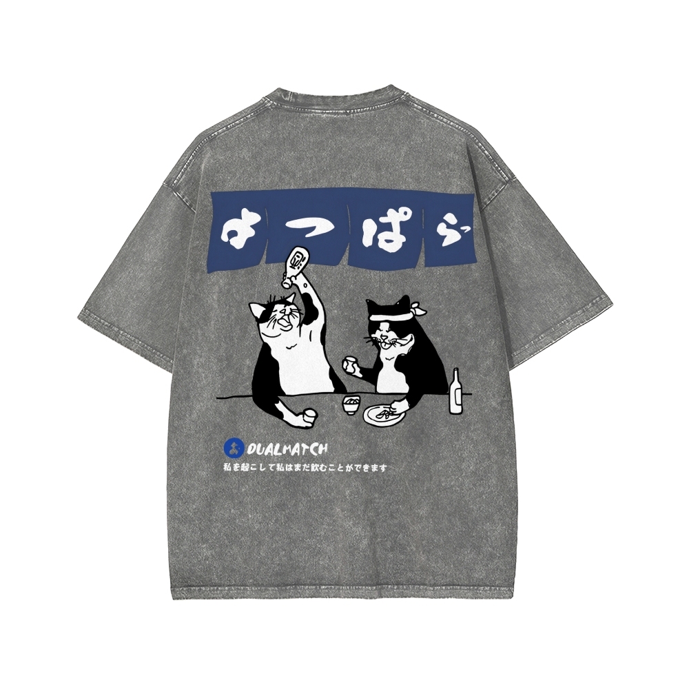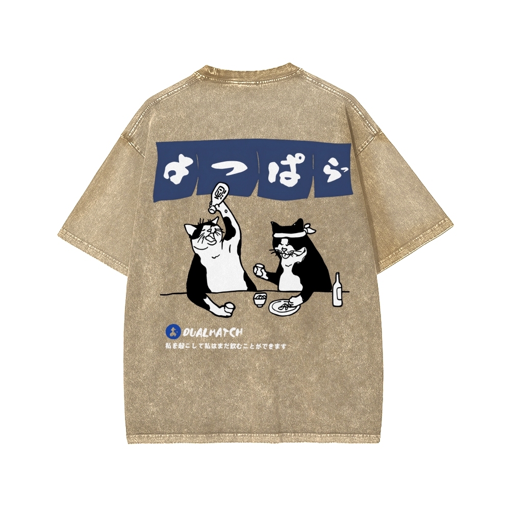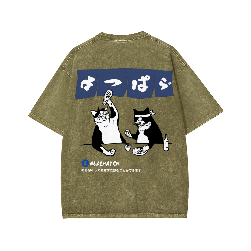 Drunken cat Front And Back Printing Washed T-shirt