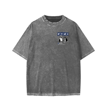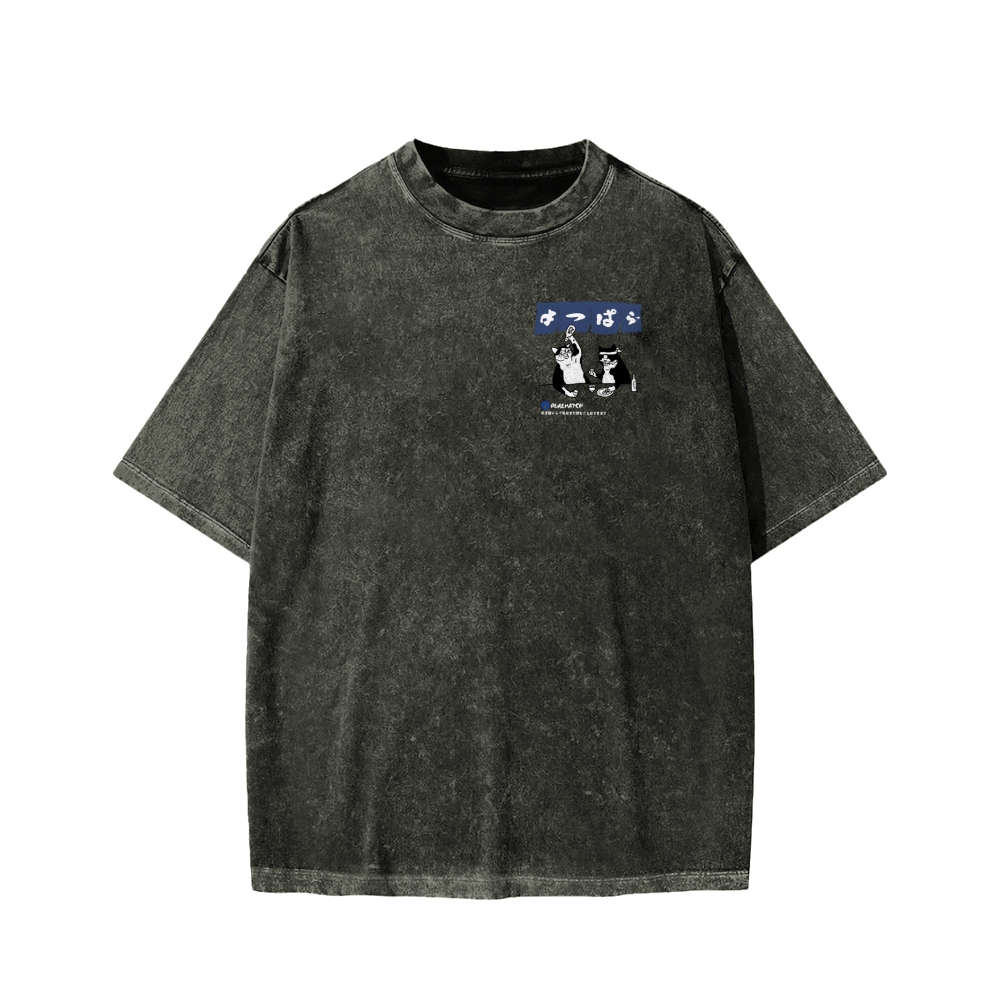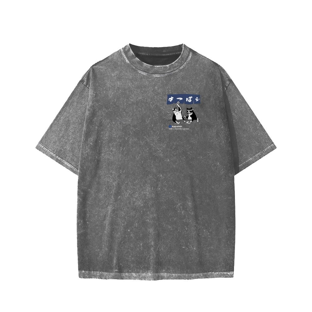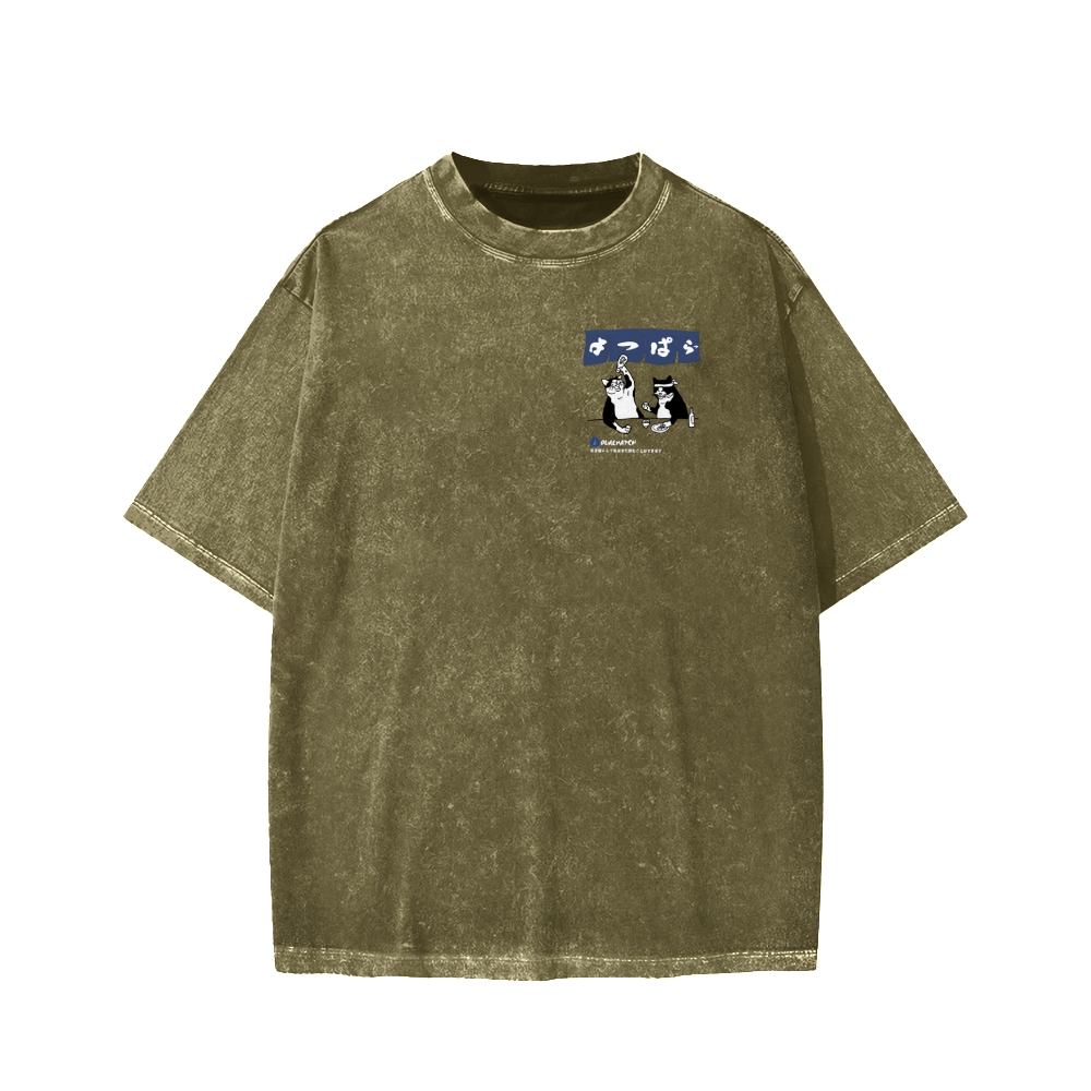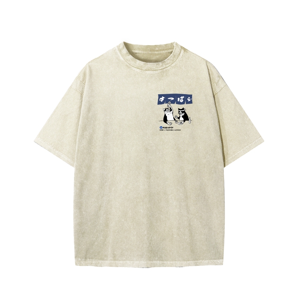 Drunken cat Front And Back Printing Washed T-shirt