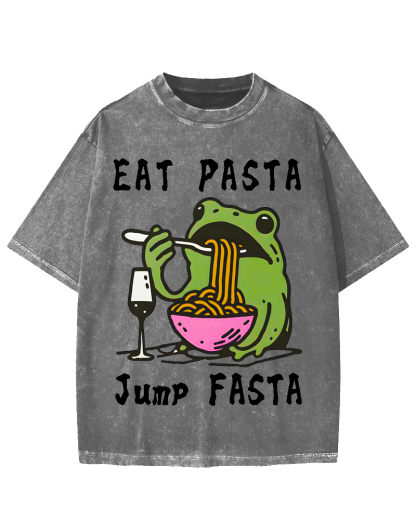 Eat Pasta Jump Fasta Funny Frog Vintage Washed T-shirt