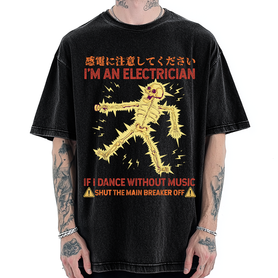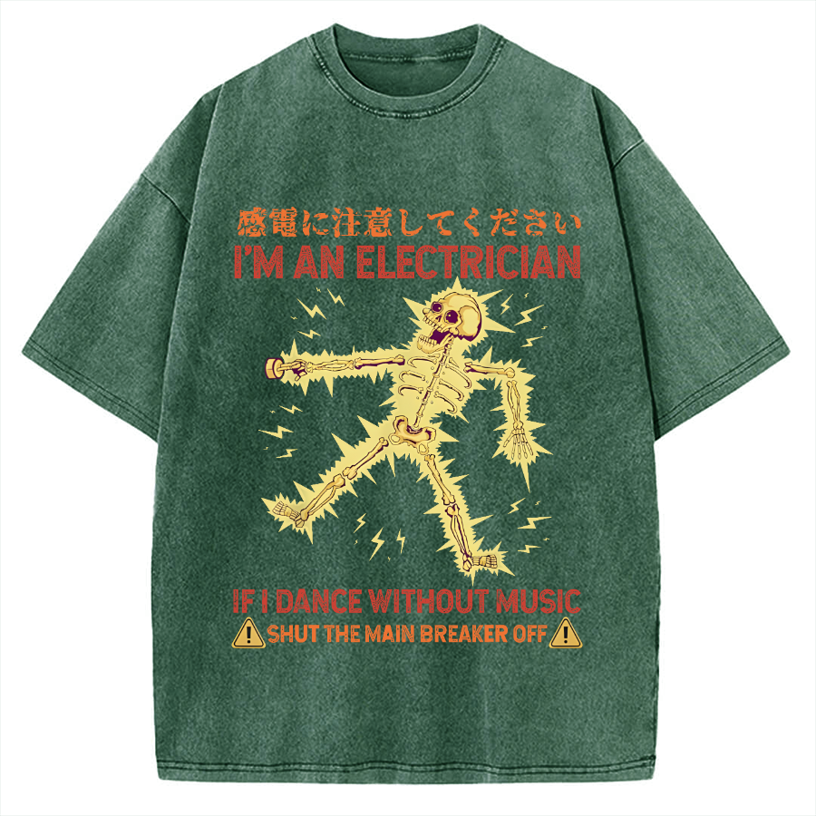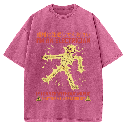 Electrician Dance Skeleton Vintage Washed T-shirt