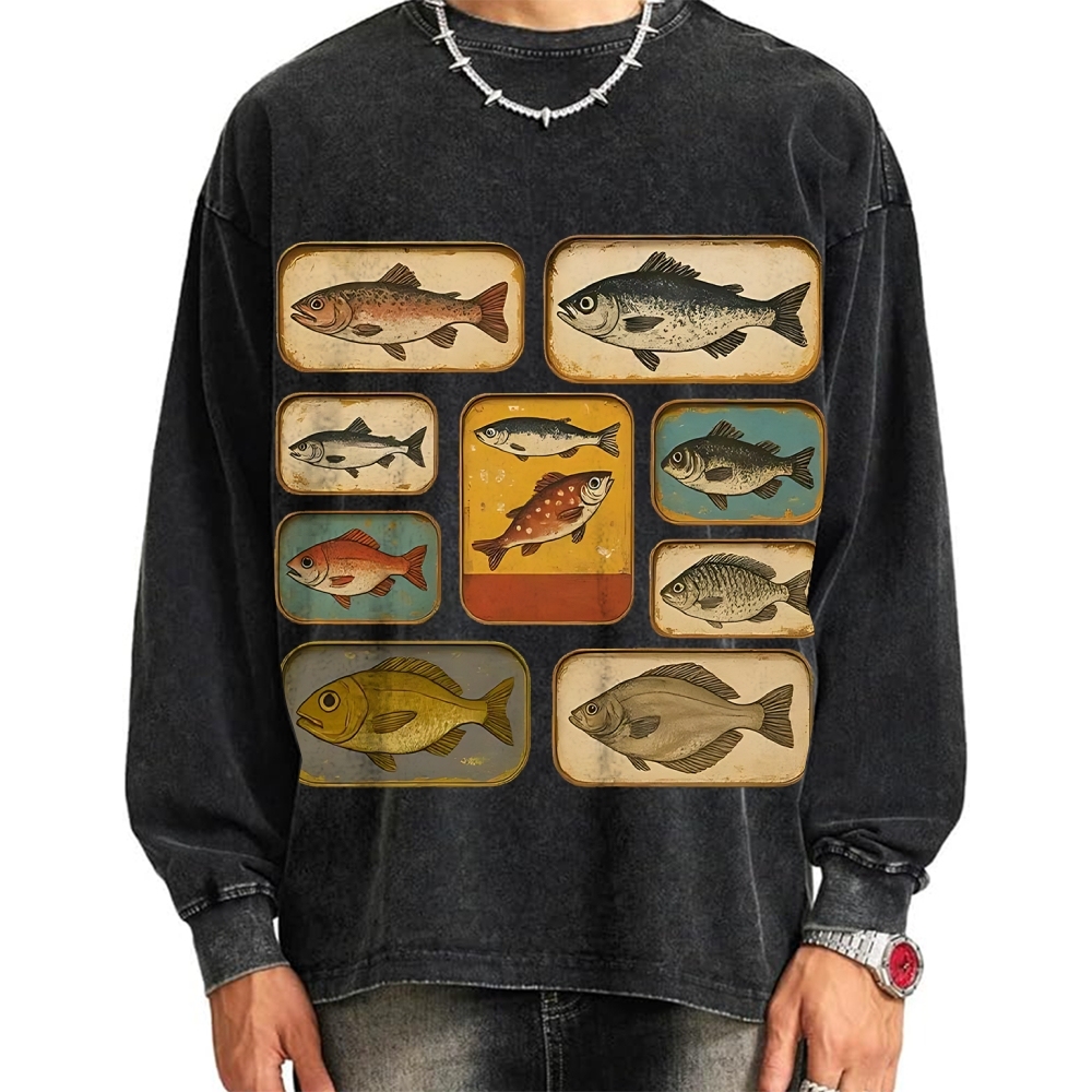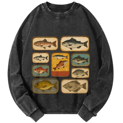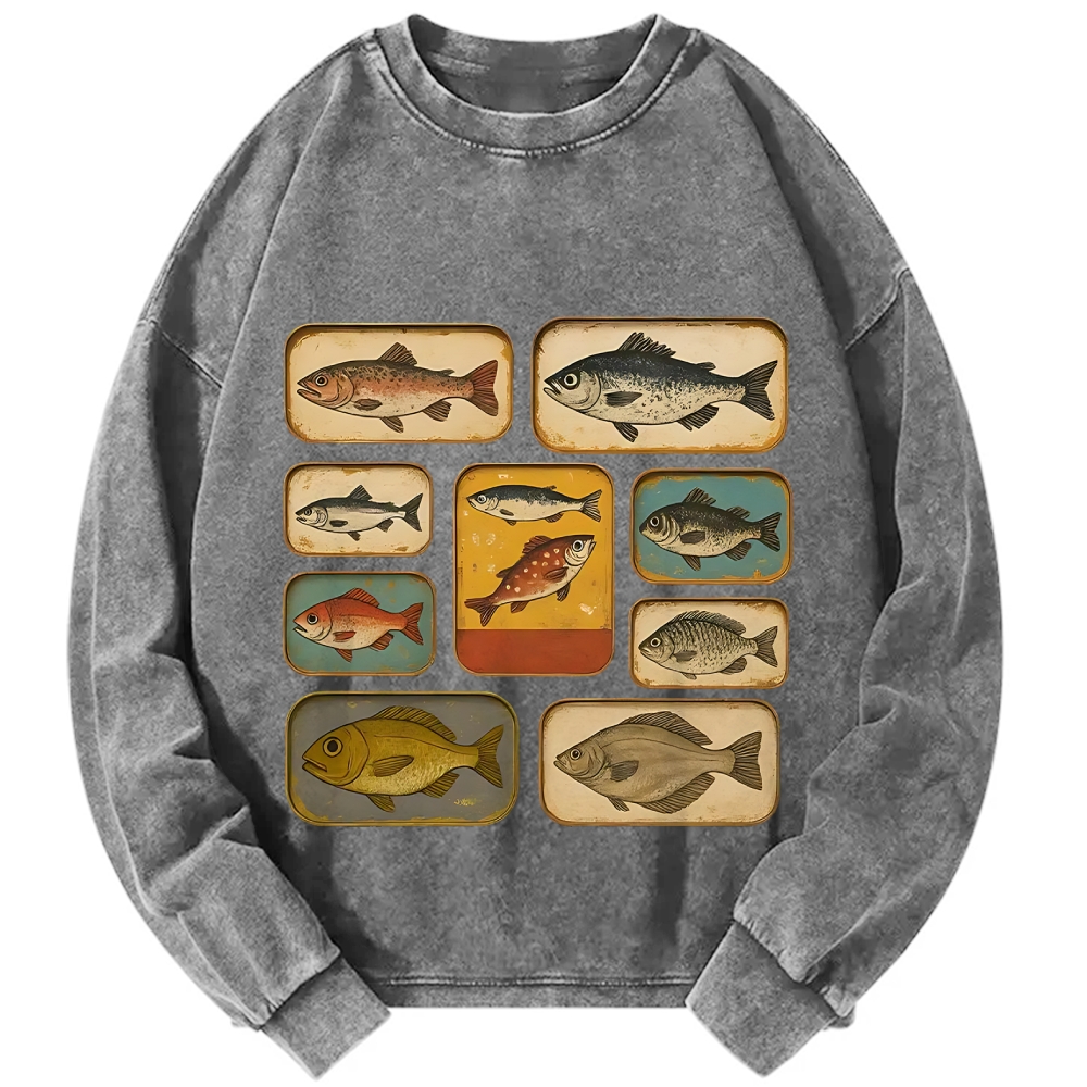 Fish Stamp Vintage Washed Sweatshirts