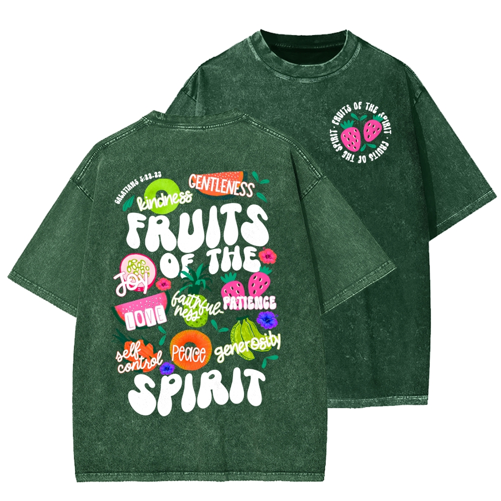 Fruit Of The Spirit Christian Front And Back Printing Washed T-shirt