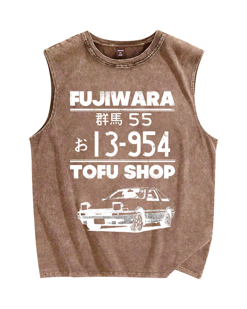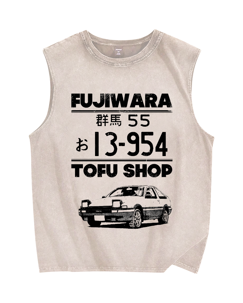 Fujiwara tofu shop Car Vintage Distressed Washed Tank Top