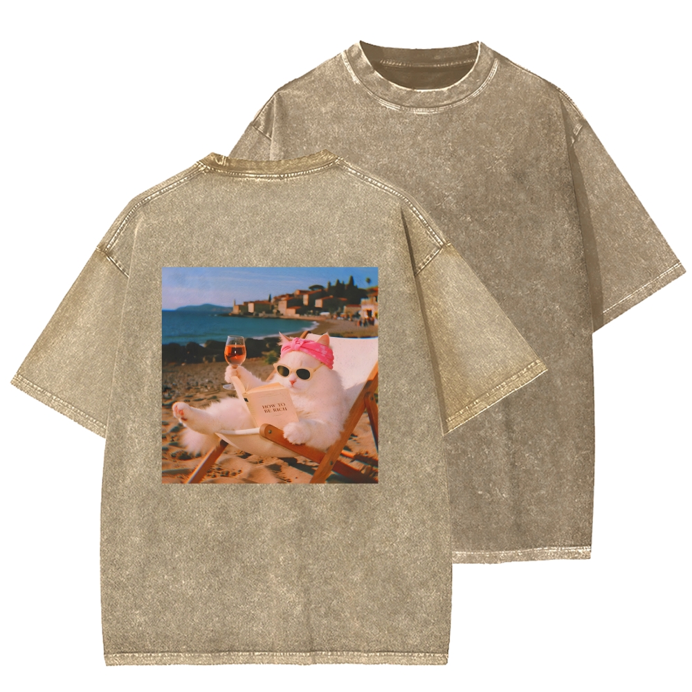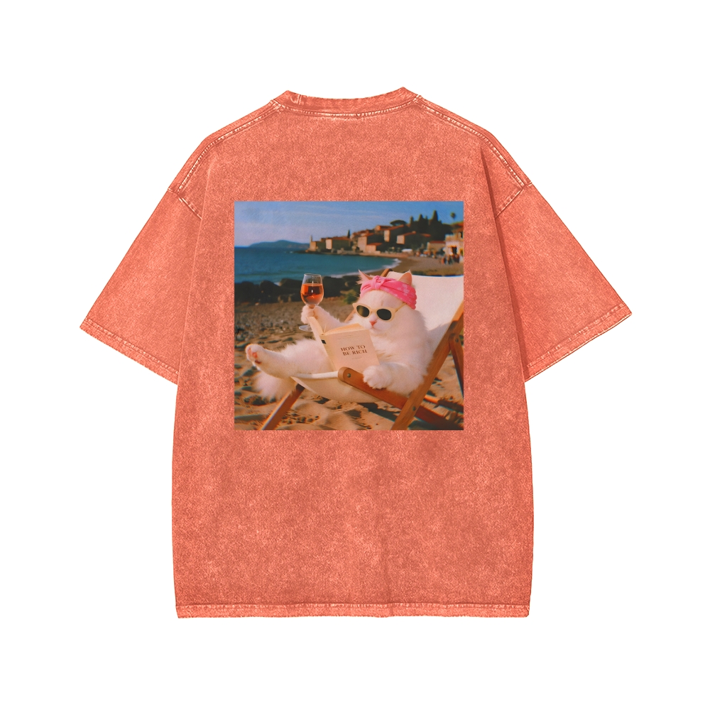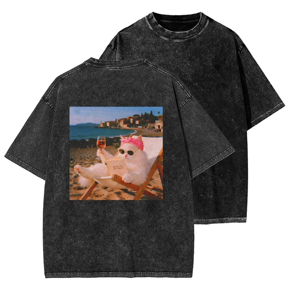 Funny Cat Pictures Front And Back Printing Washed T-shirt