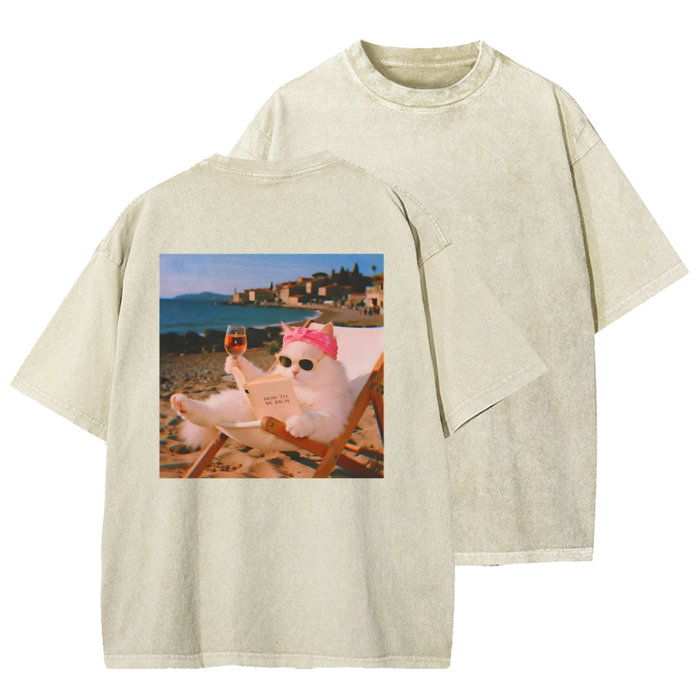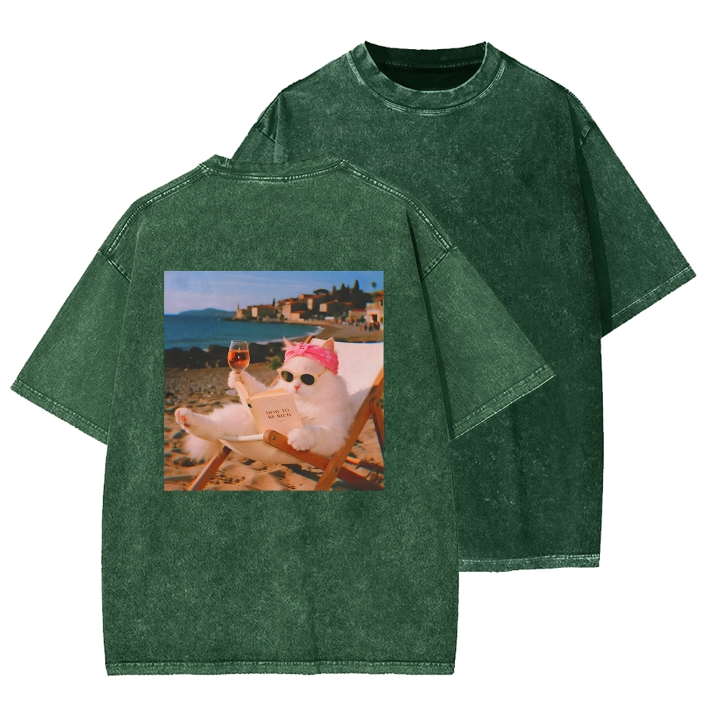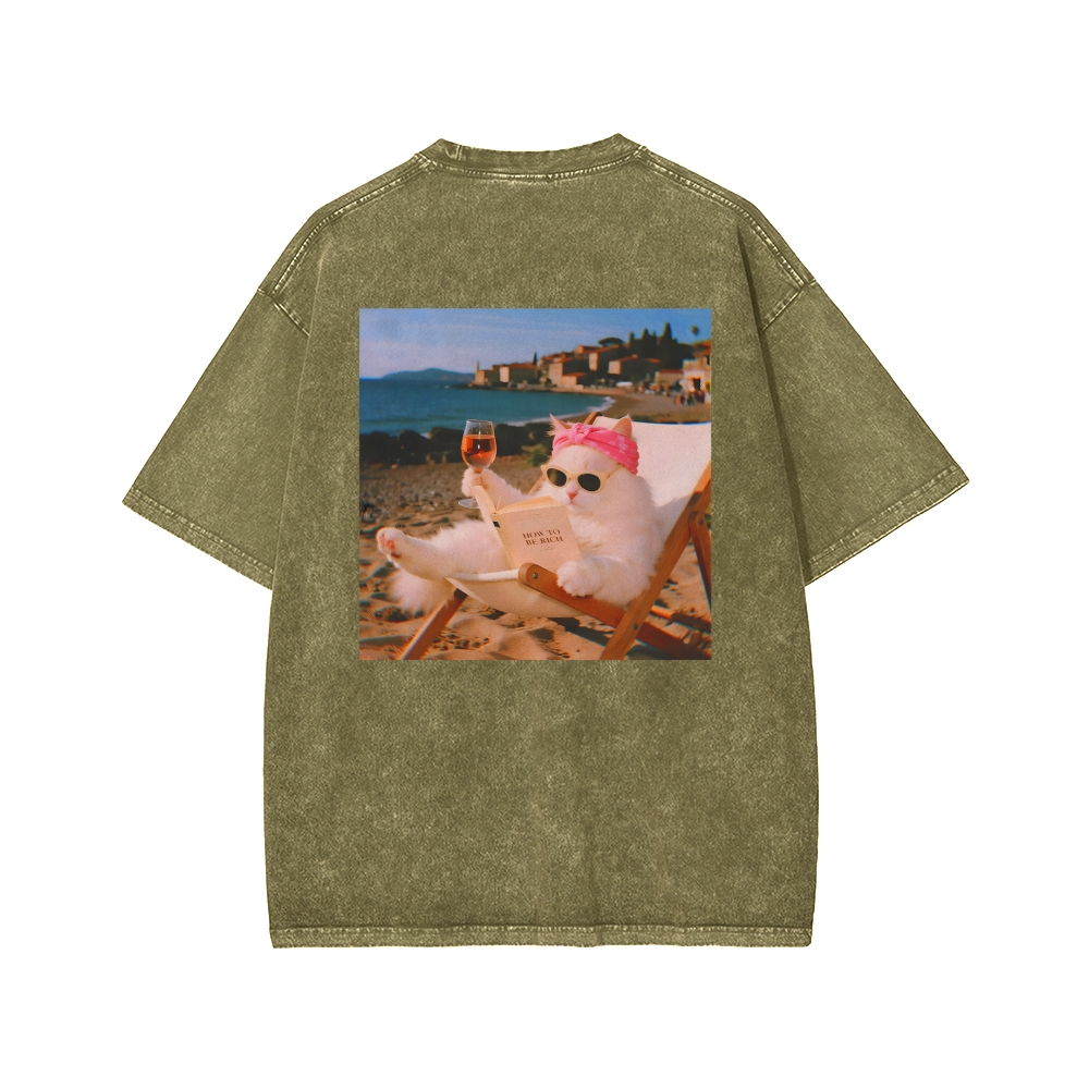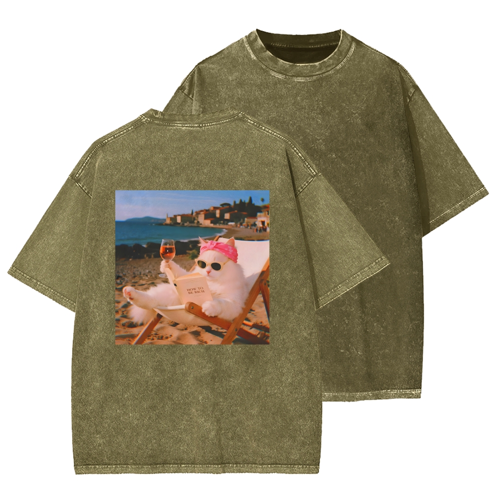 Funny Cat Pictures Front And Back Printing Washed T-shirt