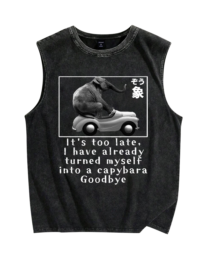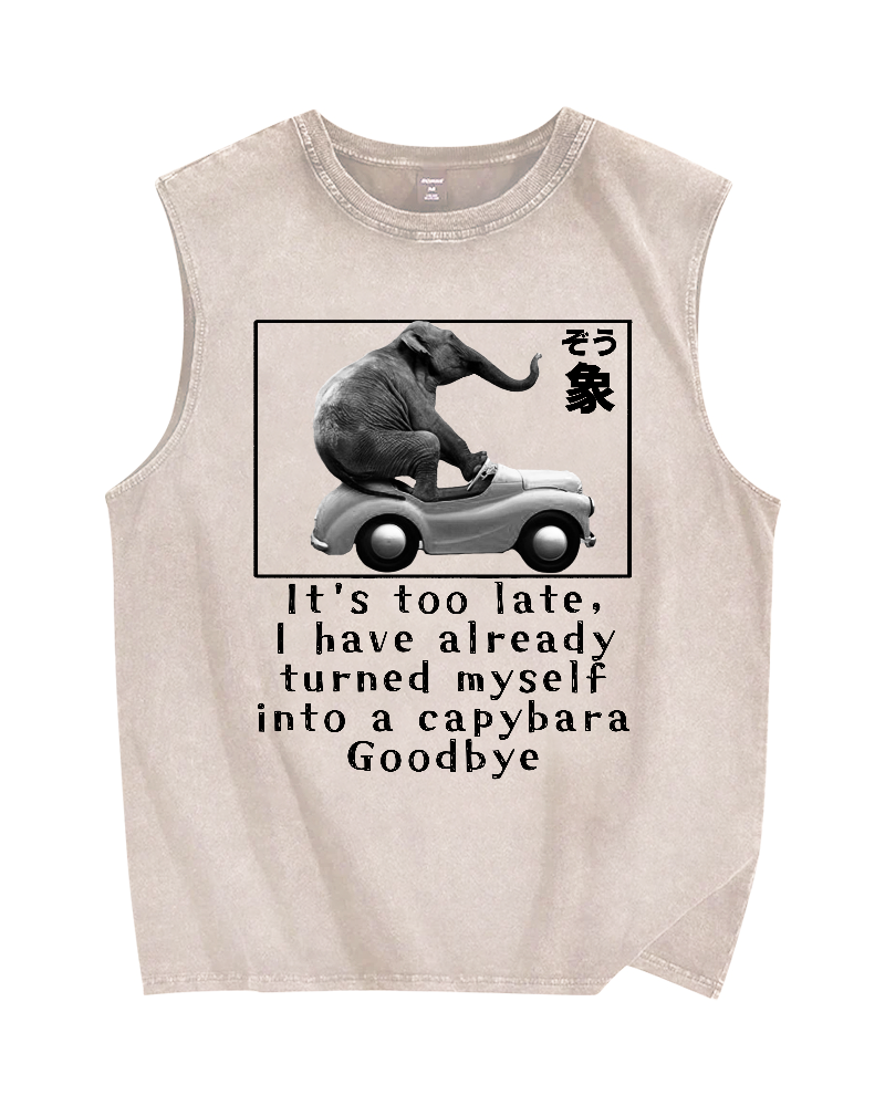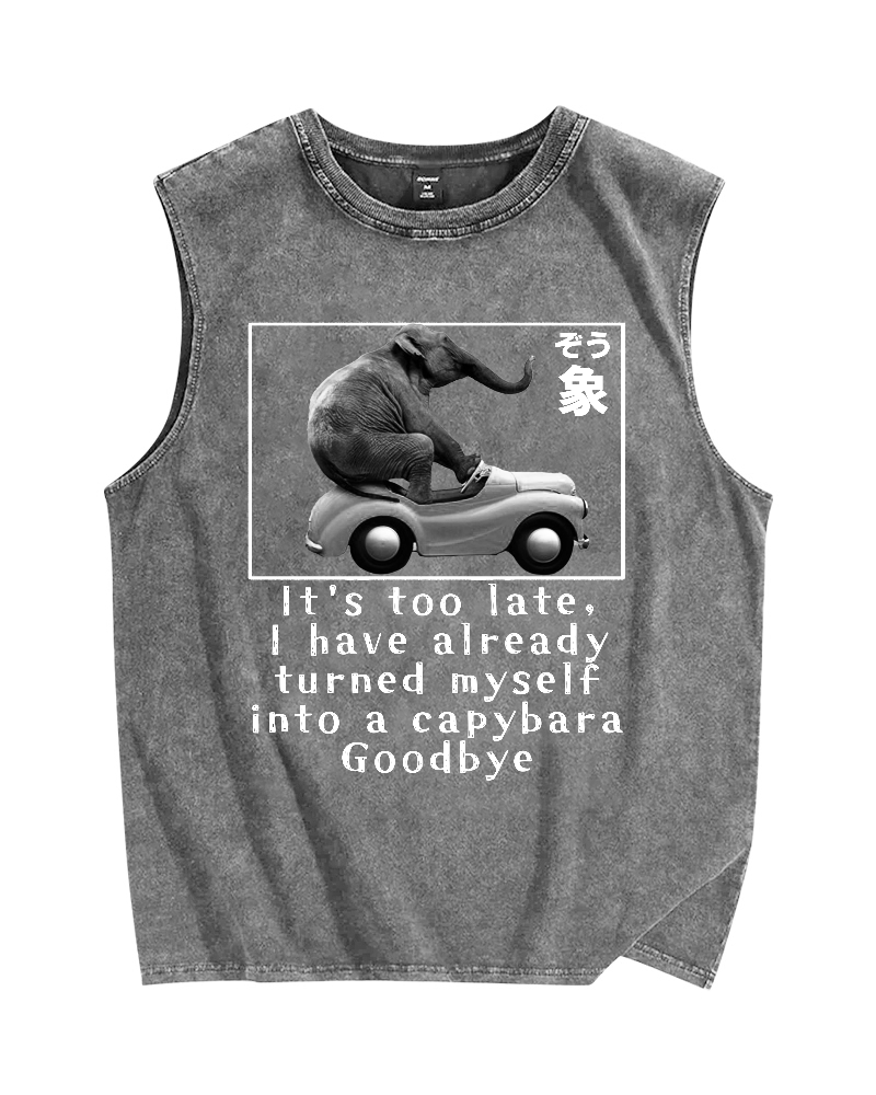 Funny elephant driving a car Vintage Distressed Washed Tank Top